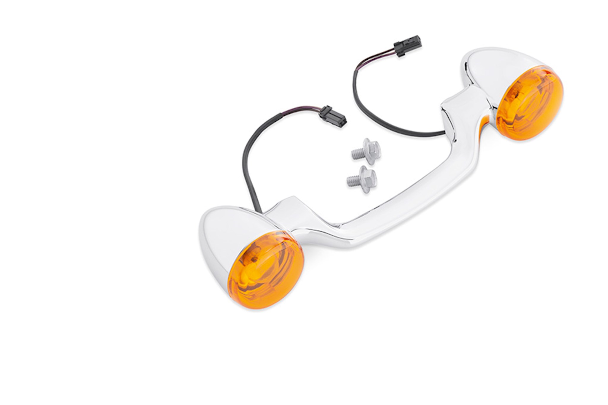 Give your bike a new sporting attitude with the Bullet Turn Signal Kit. The chrome-plated bar and bullet turn signal housings provide a custom look and the narrow profile places the signal lamps between the saddlebag and the rear fender for a sleek appearance. Fits '86-later FLST and FLSTC '93-'96 FLSTN and '91-'08 Touring models (except '04-later FLHRS and FLTR). Also fits '09-'13 FLHTC, FLHTCU and FLHTK models. Does not fit with Flat Lens Turn Signal Module P/N 91699-99A.