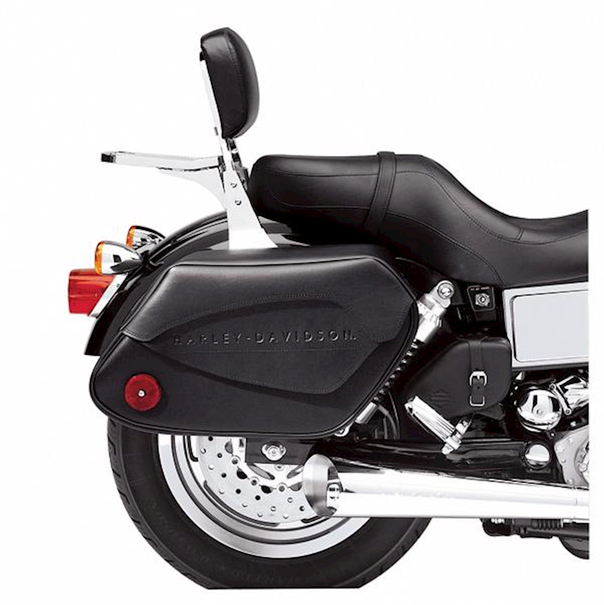 Kit moves turn signals from rear fender struts to a license bracket-mounted turn signal bar. Required to install Saddlebags P/N 91615-09A, 88200-09A, 90181-08A, 90460-06B, 79300-06A, 90564-06B, 90369-06C and 88343-10. Fits '02-later Dyna models (except FXDWG, FXDF and '09-later FXDB) and '04-later XL models (except XL883N, XL1200N, XL1200X and '11-later XL1200C). Does not fit with Layback License Plate Mounting Kits.
