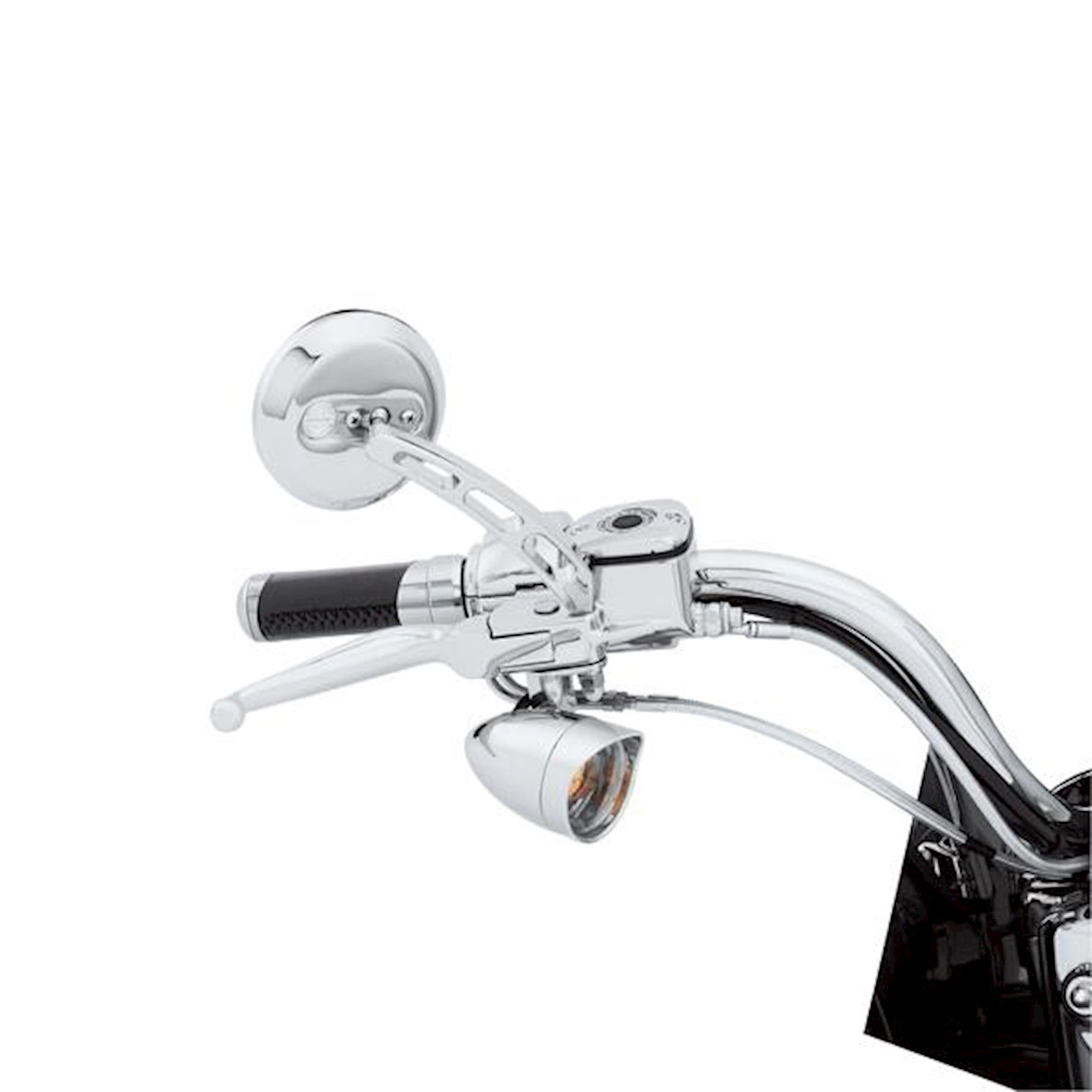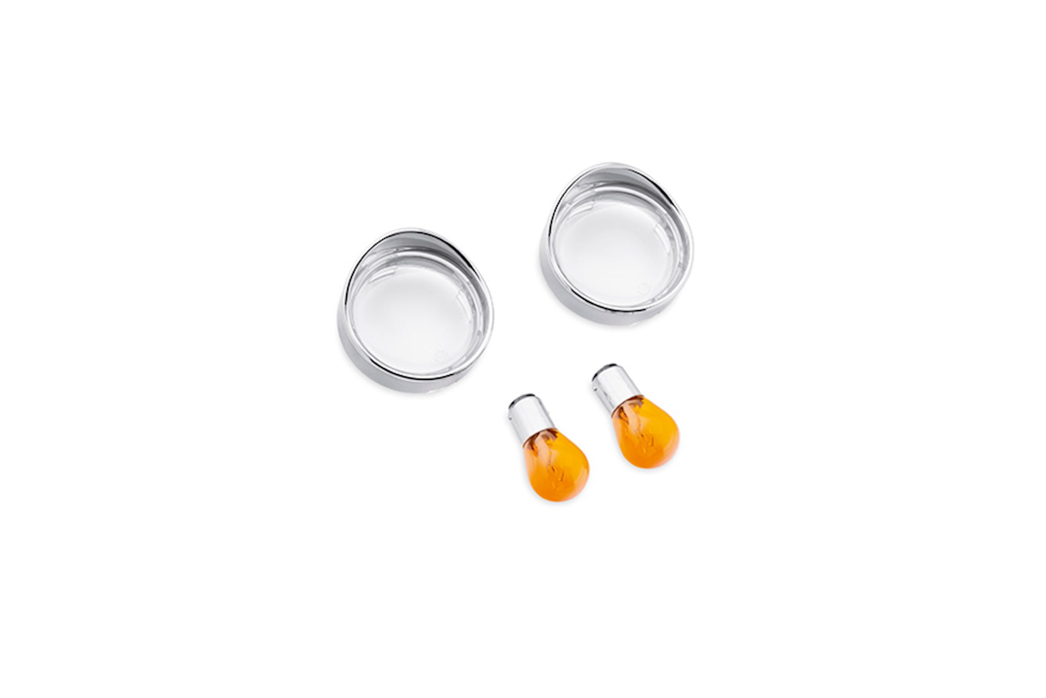 Trim ring contour matches the turn signal housing and extends out past the lens for a sleek appearance. These easy-to-install chrome-plated trim rings look great alone or in combination with Headlamp Trim Rings. Available in Visor Style for a nostalgic look or in Trim Ring style for contemporary "frenched" contour. Sold in pairs. Fits models equipped with rear bullet style turn signals (except VRSC™, XL883N, XL1200N, XL1200V, XL1200X, FXCW, FXCWC, FXDB, FXS, FXSB, FXSBSE, FLS, FLSTC, International models with rear LED turn signals and models equipped with Auxiliary Turn Signal Brake Light Kit P/N 69465-06, 69463-06 or 69462-06B). Fits models equipped with front bullet style turn signals (except VRSC, XL883N, XL1200X, FLSTC, FLHP, FLHR, FLHRC and models equipped with Original Equipment or accessory LED Turn Signals).