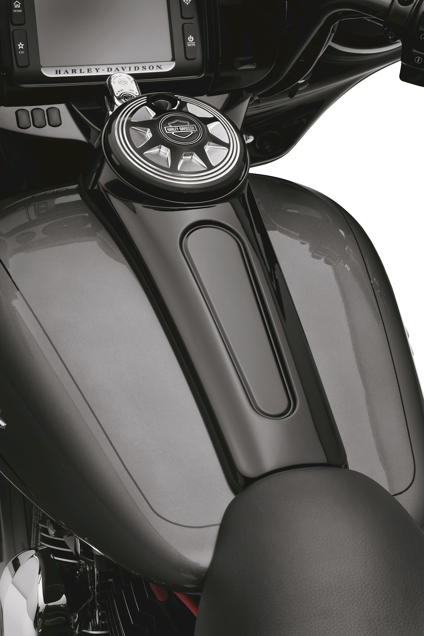 Lead the way to the dark side. This blacked-out Console Kit includes the major components required to change the chrome console to a dark custom look. Manufactured from Original Equipment components for superior fit and finish, the kit includes black console, gasket, and hardware. Available for models with or without 7-pin DIN headset connector. Add your choice of Fuel Door (sold separately) to set your bike apart from the crowd. Fits '08-later Electra Glide®, Street Glide®, Road Glide® and Trike models with center fill tank.
