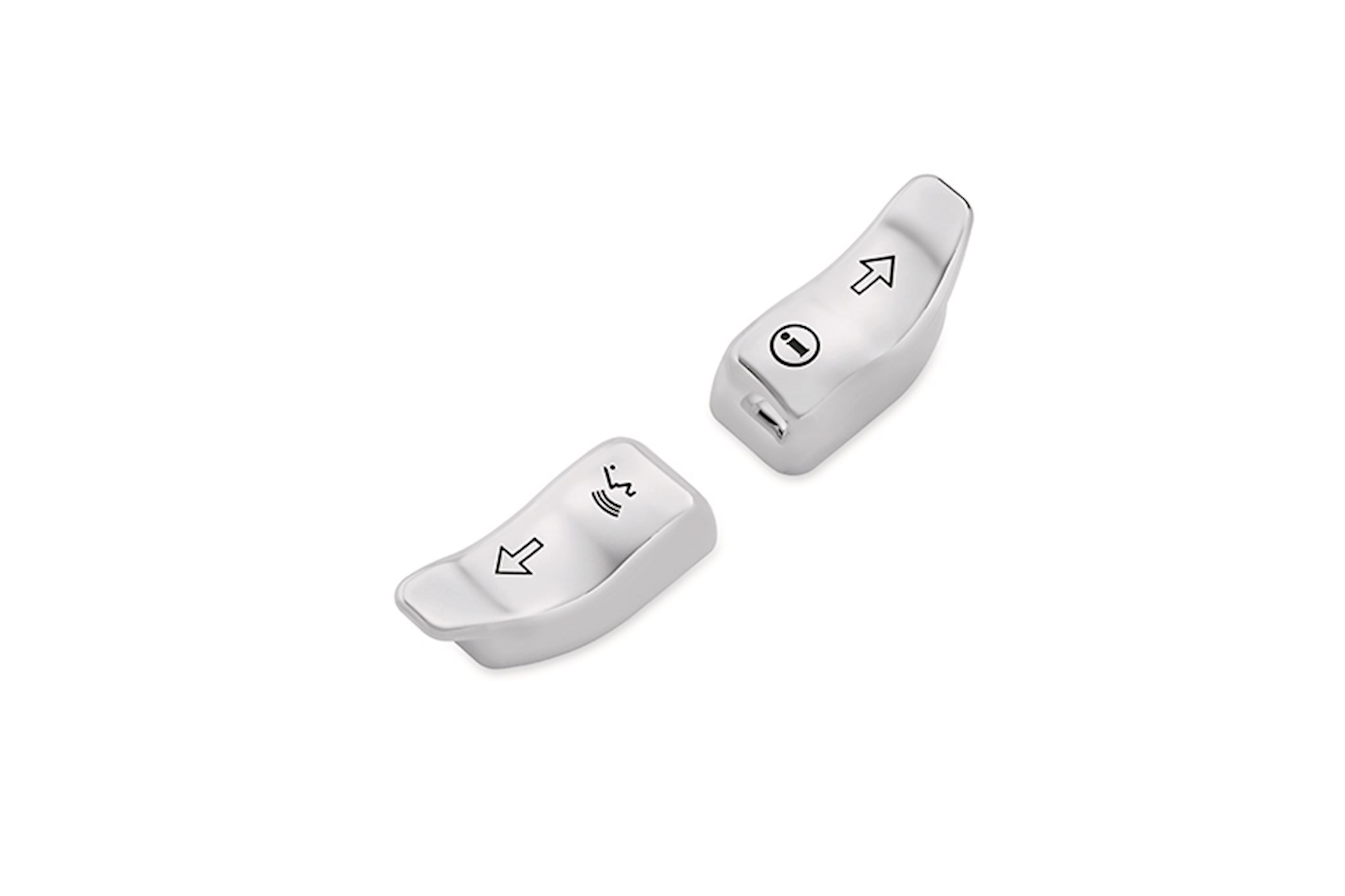 Make signaling simple. These Turn Signal Extension Caps allow riders to easily reach and activate turn signal switches without repositioning or removing their hands from the grips. The one-piece design features a contoured thumb extension that places the left and right hand turn signal control switches in a comfortable position. Available in chrome and black, these Extension Caps replace the stock turn signal switch caps without re-wiring.