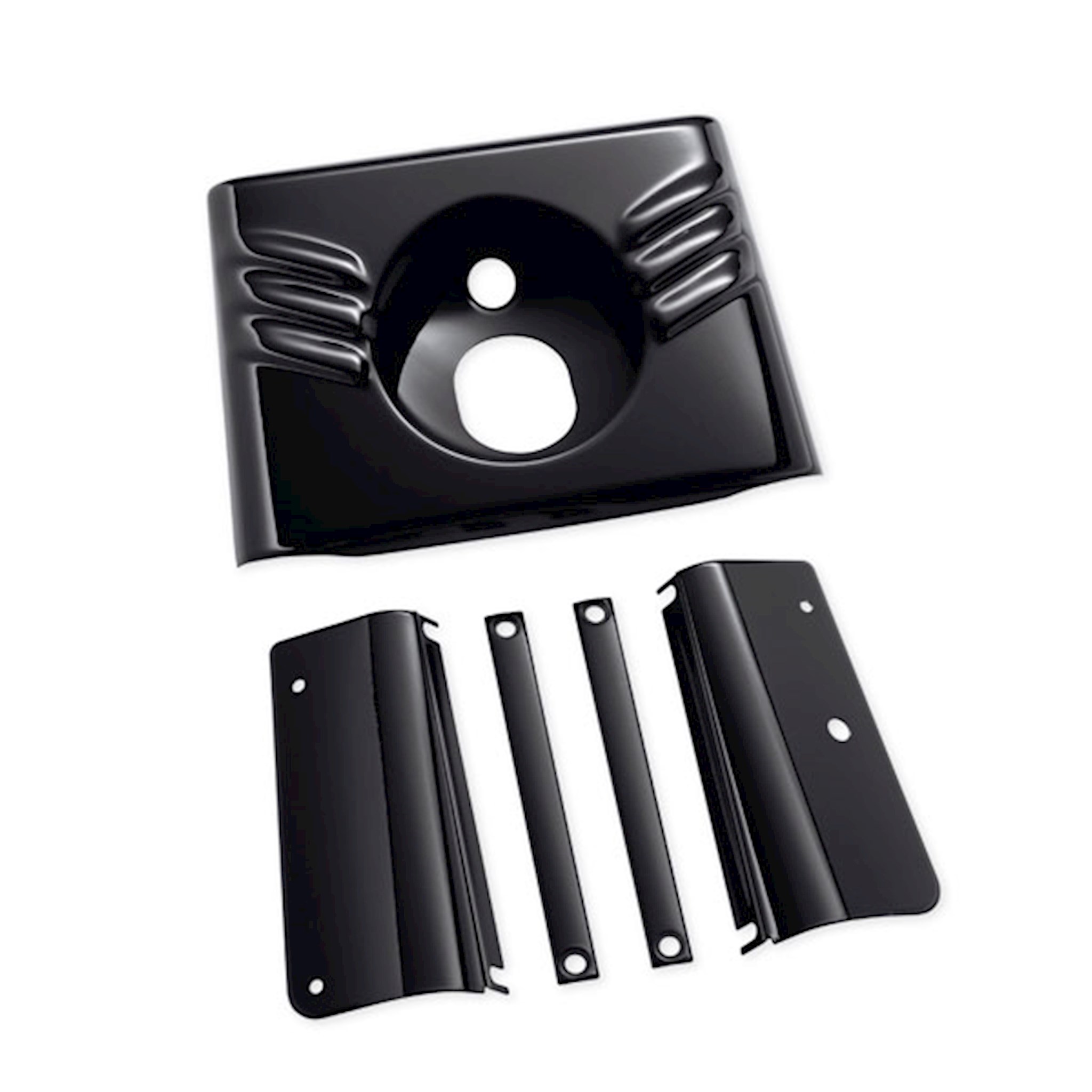 Add to the sinister look of your blacked-out Softail® motorcycle. Manufactured from Original Equipment components, this gloss black headlamp housing replaces the chrome headlamp shell for a custom look. Shell includes wiring harness and connector and accepts the Original Equipment headlamp, trim ring and mounting hardware.