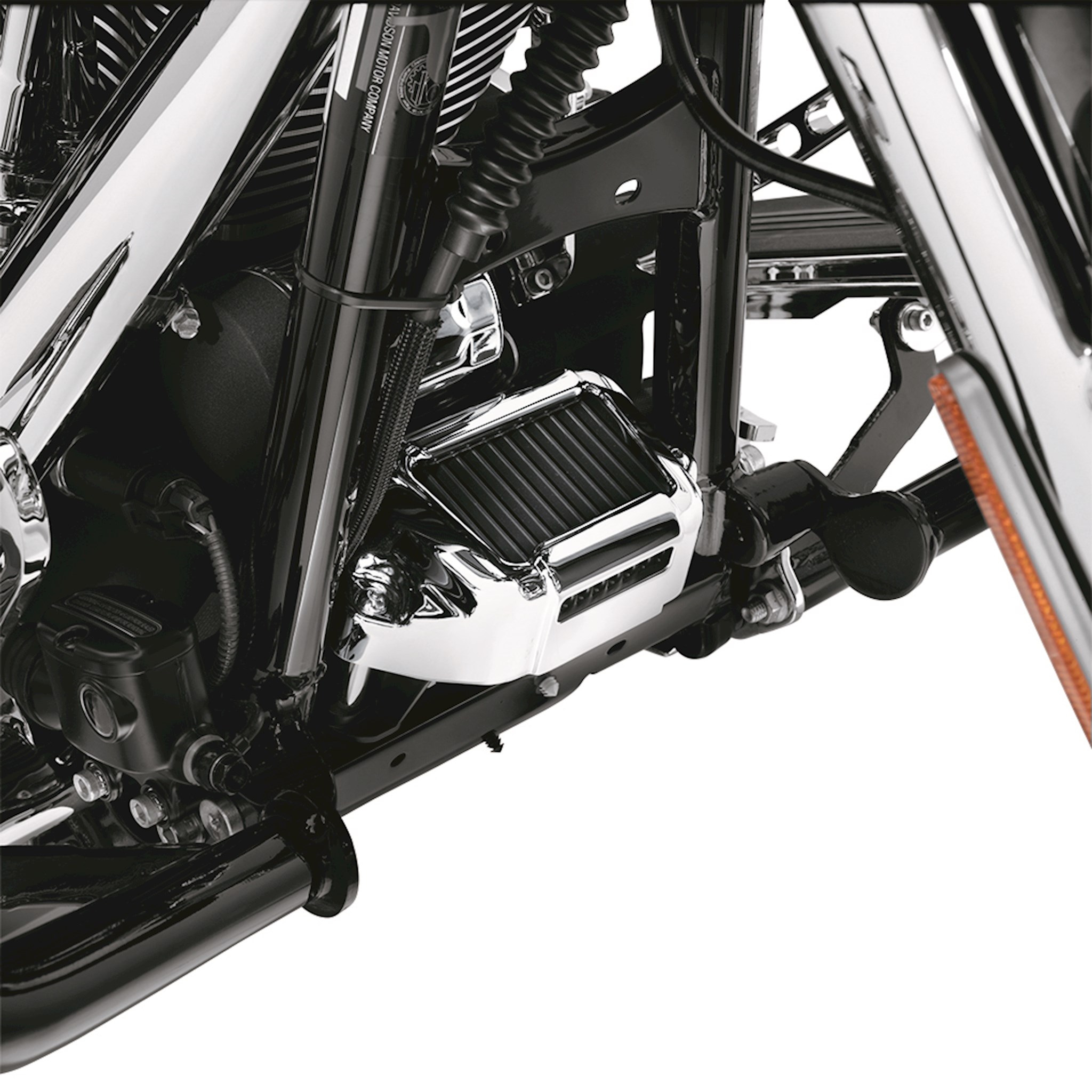 This chrome-plated steel cover features an open-faced design to allow airflow through the voltage regulator. Chrome-plated mounting hardware included.