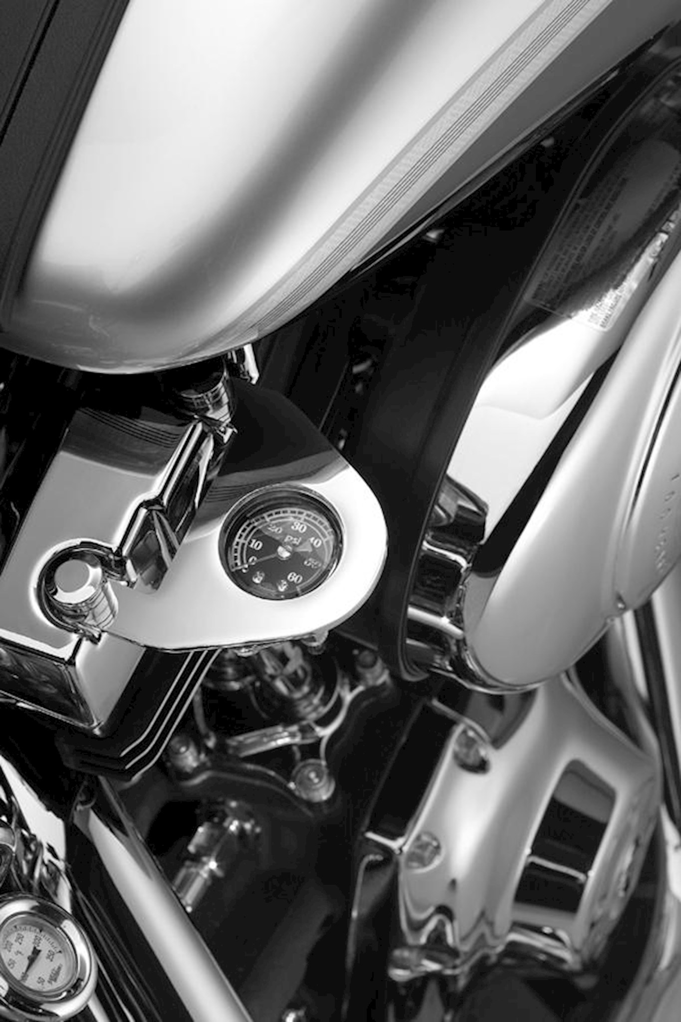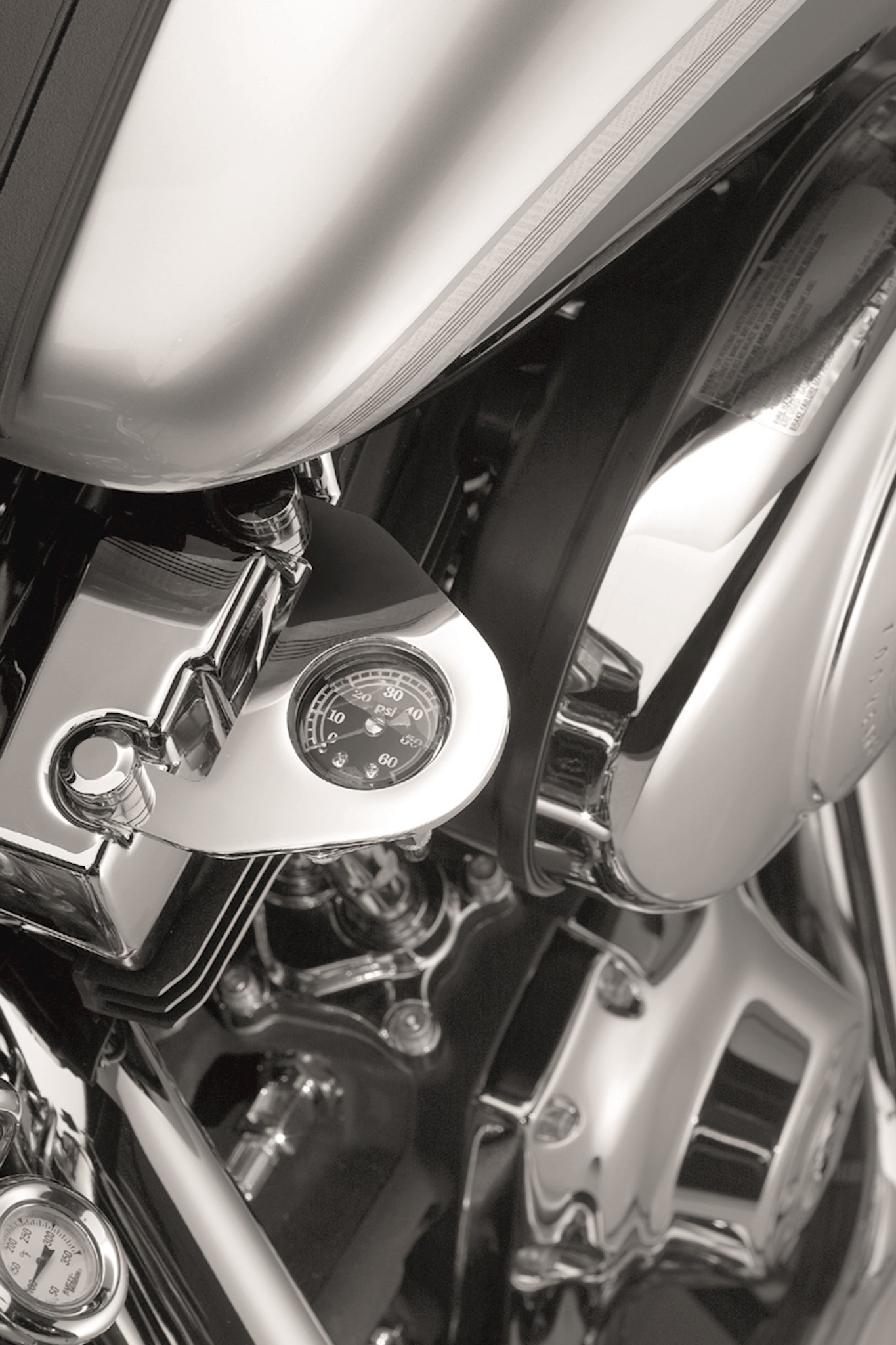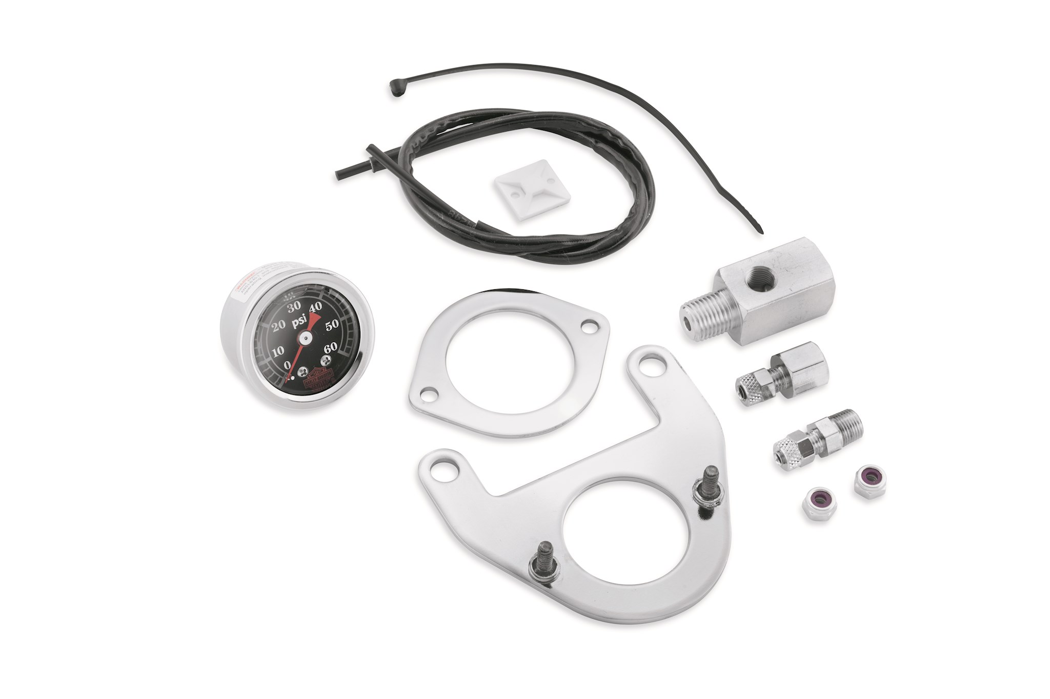 Check your oil pressure at a glance with this oil-filled Pressure Gauge Kit, specifically designed to look good, fit right and perform properly on your Twin Cam-equipped motorcycle. The custom mounting brackets have been polished and chrome-plated to rigid Harley-Davidson standards and the gauge offers premium reliability. The kit includes all necessary hardware and mounting brackets for quick and clean installation.
