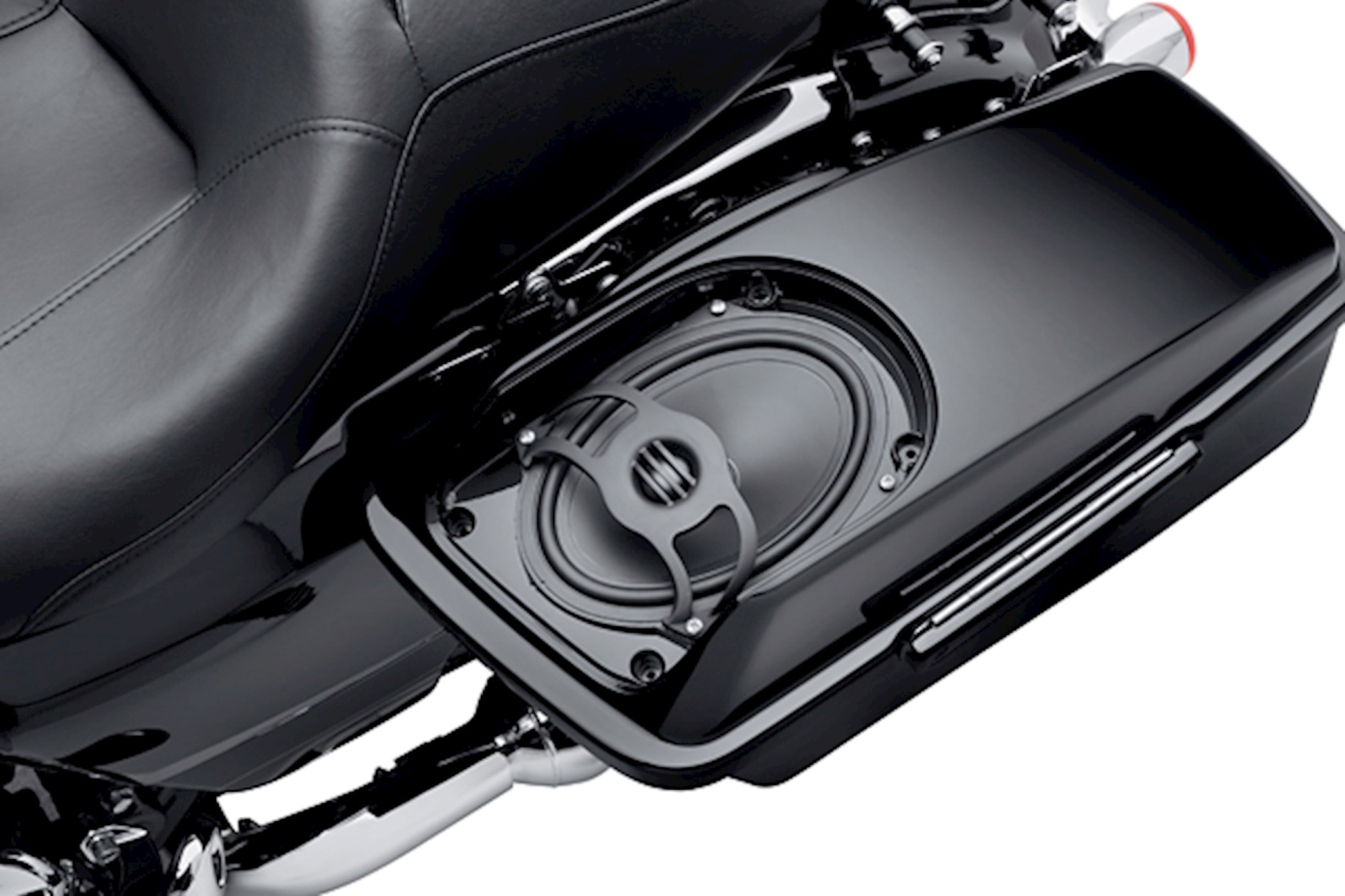 Grab the best seat in the house. Boom!™ Audio Saddlebag Speakers provide two powerful rear speakers, directed at the rider for concert sound. Saddlebag mounted speakers increase the available sound pressure level and produce higher listening volume, lower distortion and improved clarity at highway speeds. The latched and gasket-sealed saddlebag acts as a large speaker enclosure to enhance bass response. The pair of 5" x 7" waterproof 2-ohm full range speakers feature suspended 1" tweeters that are directionally optimized for improved rider acoustics. The vacuum-formed woofer cones feature high-flux Neodymium magnets for more power with less weight. Extensively tested to withstand the harshest riding conditions, the speakers fit seamlessly in custom-designed saddlebag lids (sold separately) and are covered by stylish but durable mesh speaker grills. Kit includes left and right speakers, grills, protective mounting baskets, rear wiring harness and installation hardware. Saddlebag lids and model-specific wiring harness (sold separately). Speakers feature two-year warranty.