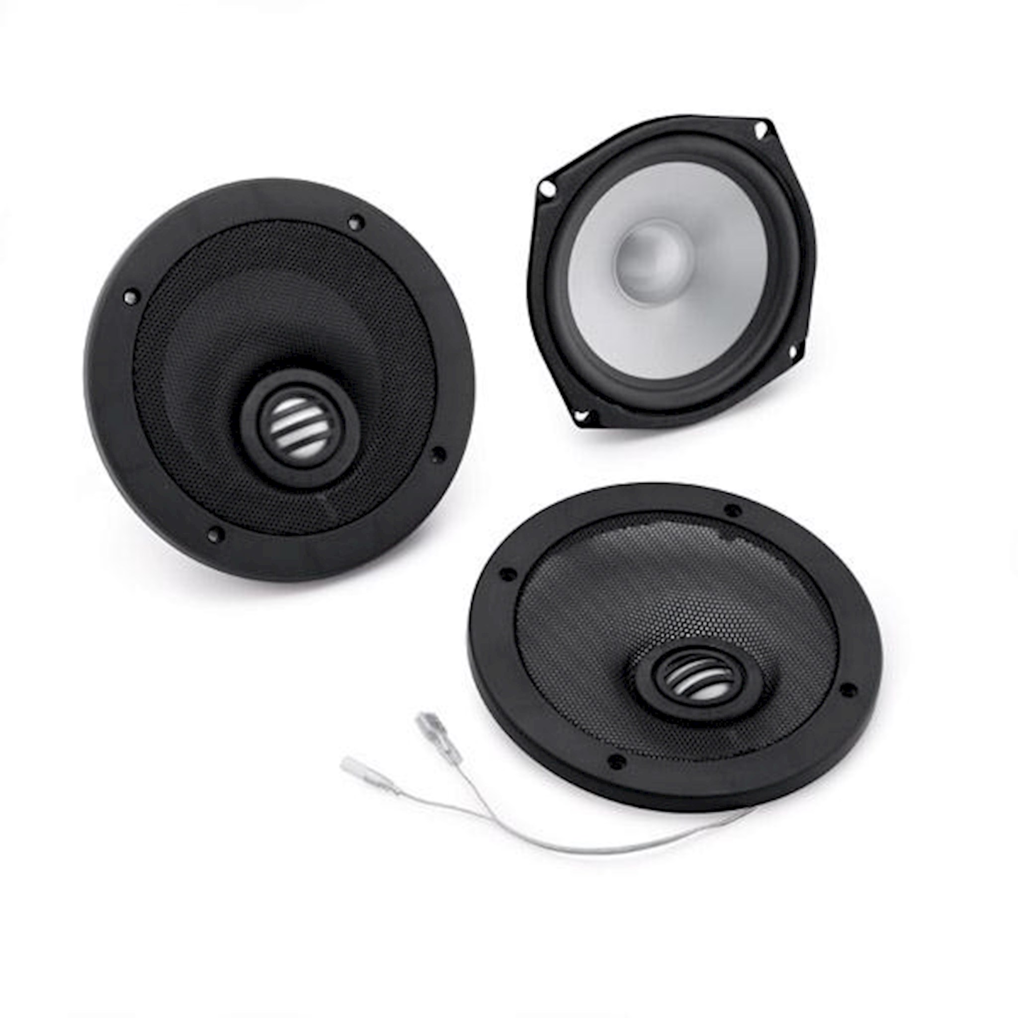 Capture every note. Boom!™ Bagger High Performance Speakers are designed for maximum performance in the harsh motorcycle environment. Two-way speaker design with separate full-range element and grill-mounted tweeter provides improved high-frequency response that helps cut through the road and wind noise. Increased speaker sensitivity provides louder output than Original Equipment speakers and the leading competition at the same volume setting, resulting in reduced distortion for improved clarity at speed. Vibration-tested 5.25" waterproof speakers feature injection-molded woofer cones with a high-flux Neodymium magnet and are sized to be a direct replacement for the factory speakers with no modification to the speaker housing. Complete kit includes two-way speaker design with separate custom grill-mounted tweeters, electronic crossovers and plug and play wiring connections. Speakers feature two-year warranty.