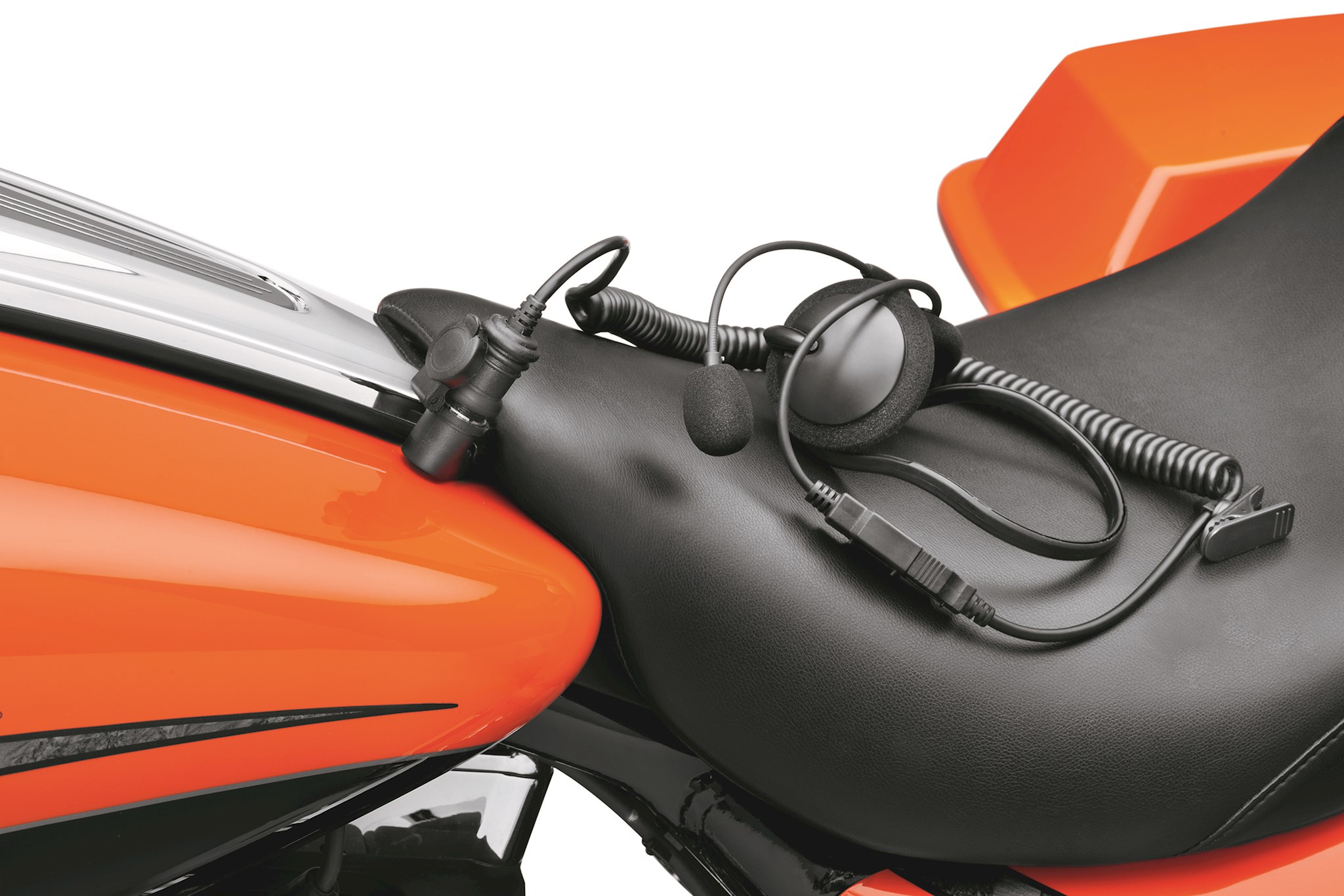 Add headphone-access music and rider-to-passenger communication to your Advanced Audio System-equipped Touring bike. The stock radio can be programmed to enable the integrated intercom mode that works flawlessly as you ride down the road and this wiring kit includes the addition of front- and rear-communication ports to bikes without rear speaker pods or Tour-Pak® luggage. Discrete tank and rear fender pods accept 7-pin plugs for rider and passenger headsets that allow the rider and passenger to listen to infotainment programming without disturbing the neighbors. The rear port features a separate volume control, so both rider and passenger can adjust the sound to comfortable levels. This kit also permits installation of a H-D® Detachables™ Tour-Pak carrier to your rear speaker-equipped Ultra and Ultra Limited models. By relocating the headphone jack and the push-to-talk control from the speaker pod to the rear fender, full radio and communications function is retained when you remove the Tour-Pak.Kit includes rider and passenger plug-in pods, fairing speaker/headset switch, left-side hand control with push-to-talk switch and required mounting hardware. Works with full- or half-helmet headsets (sold separately).