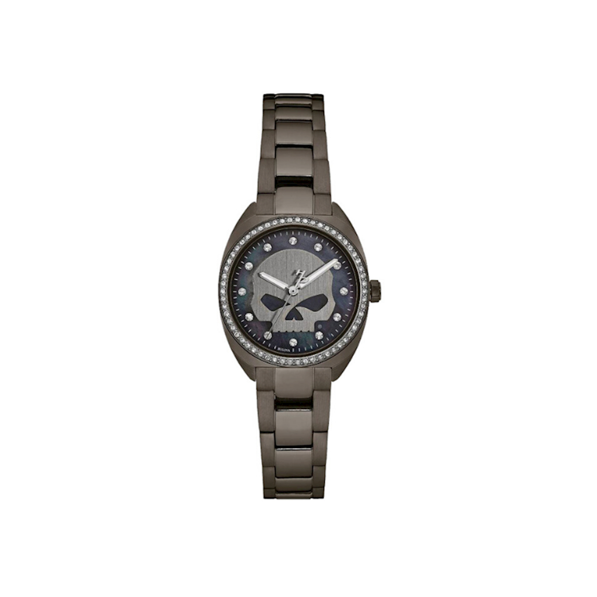 Harley-Davidson® Women's Crystal Willie G Skull Watch, Gunmetal Finish