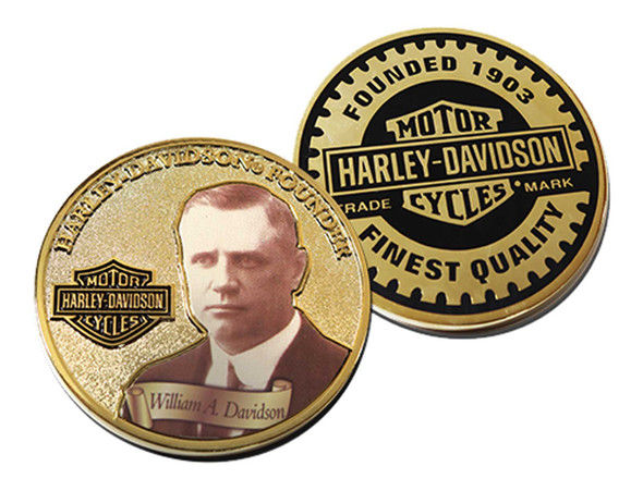 Box set features 4 gold plated 1.75" coins. Each coin is printed with photos of Harley-Davidson® founding fathers. Made of solid, high-quality metal. Coins are held securely in a collectors box. Any die-hard Harley enthusiast won't be able to pass this collectors piece up!