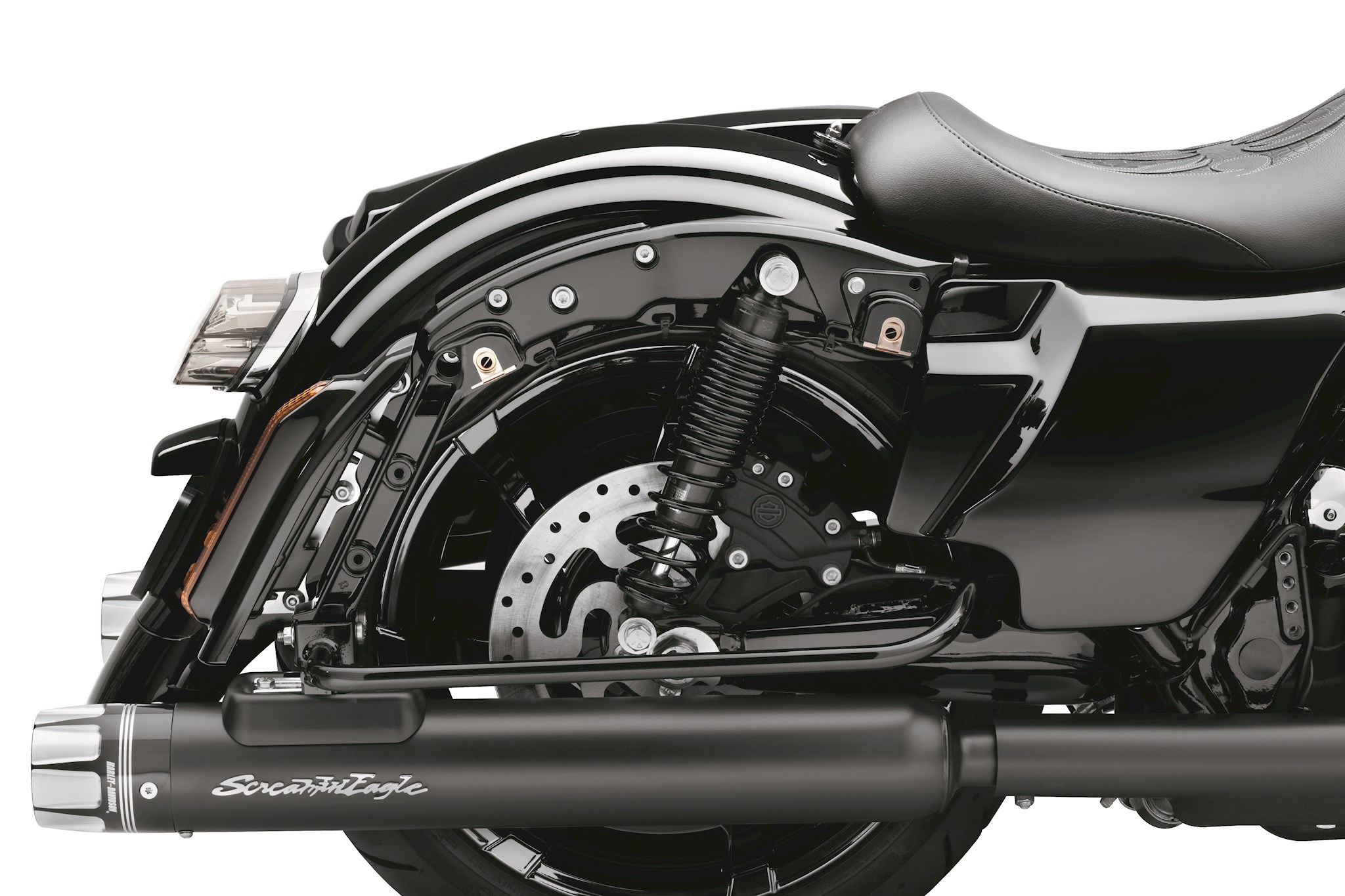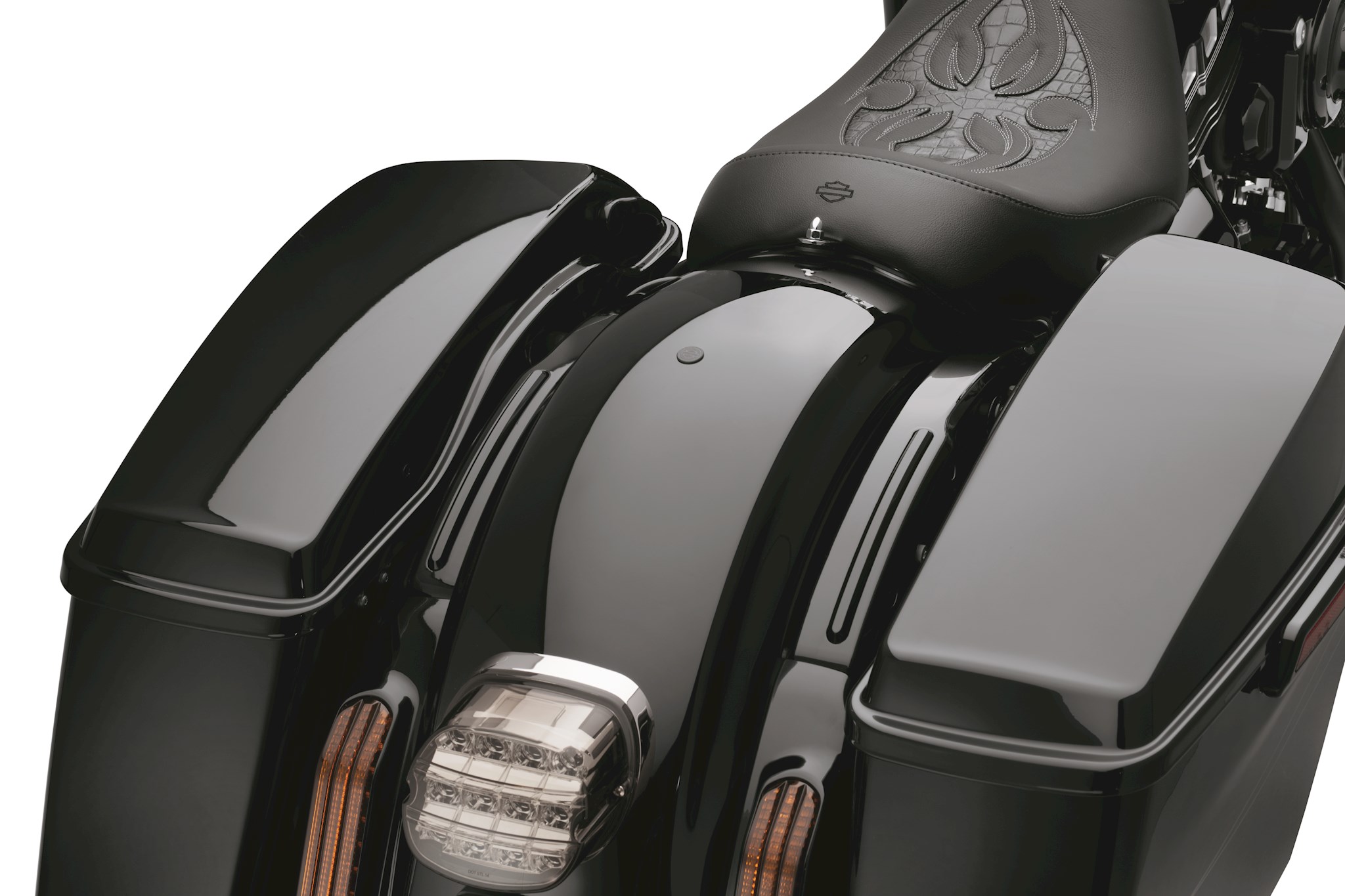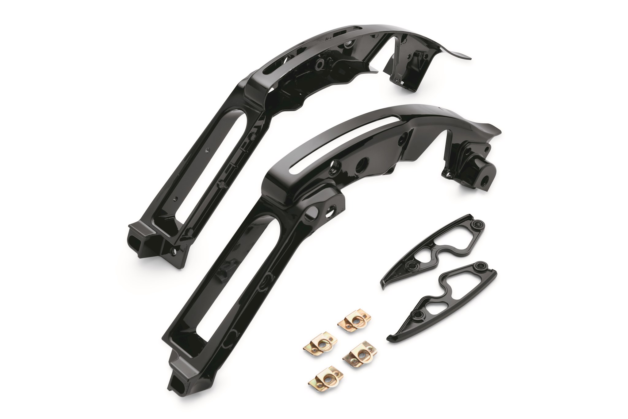 Manufactured from Original Equipment components to ensure superior fit and finish, the gloss black Fender Support Kit replaces the Original Equipment cast and chrome fender support system and continues the dark look to the area between and behind the saddlebags. The ideal finishing touch for your "blacked-out" Touring bike, these covers are the perfect complement to the optional gloss black Passenger Sissy Bars, Luggage Racks, Tour-Pak mounting racks and Docking Hardware Kits. Kit includes gloss black left and right supports and docking hardware slot fillers.