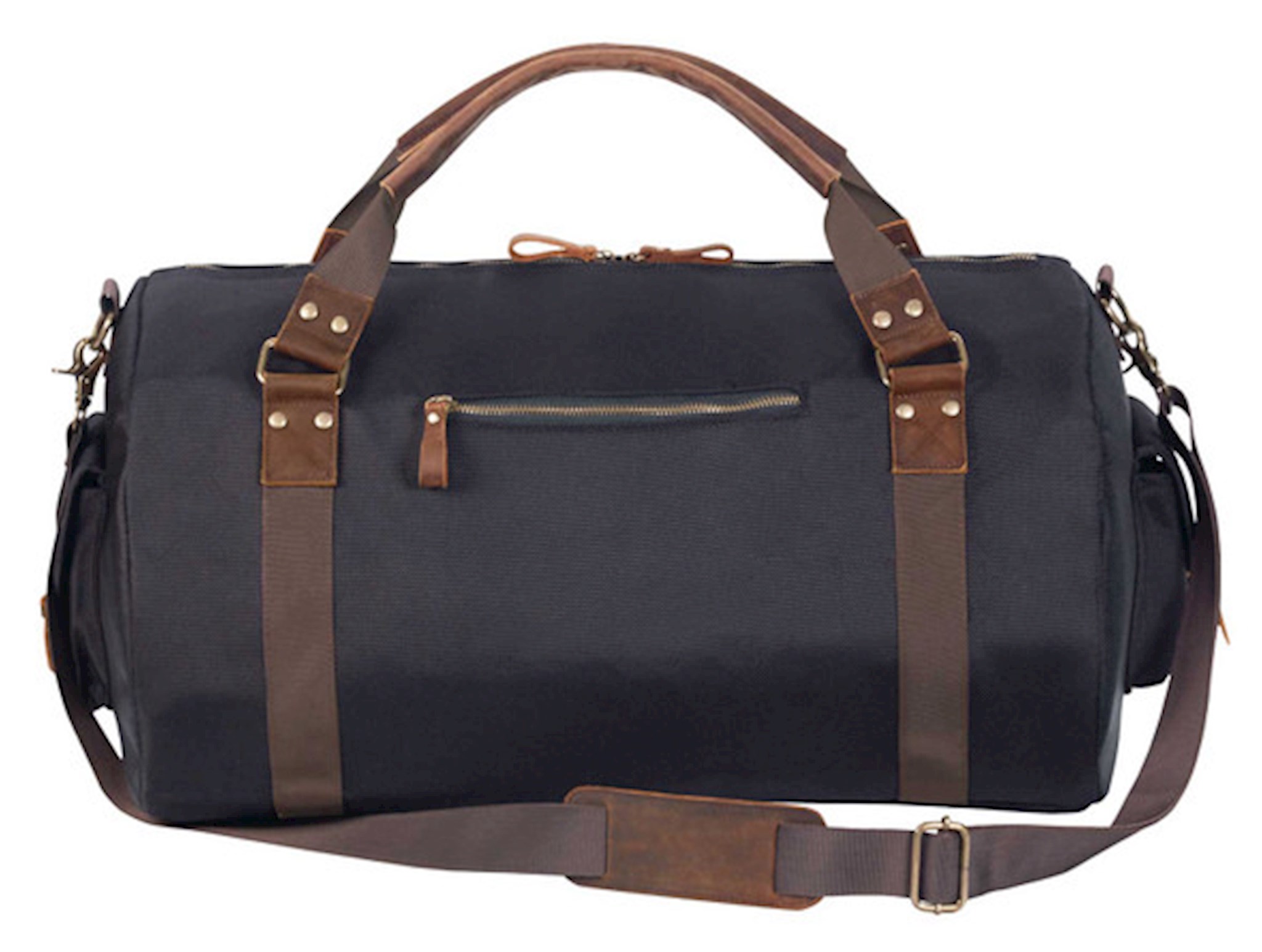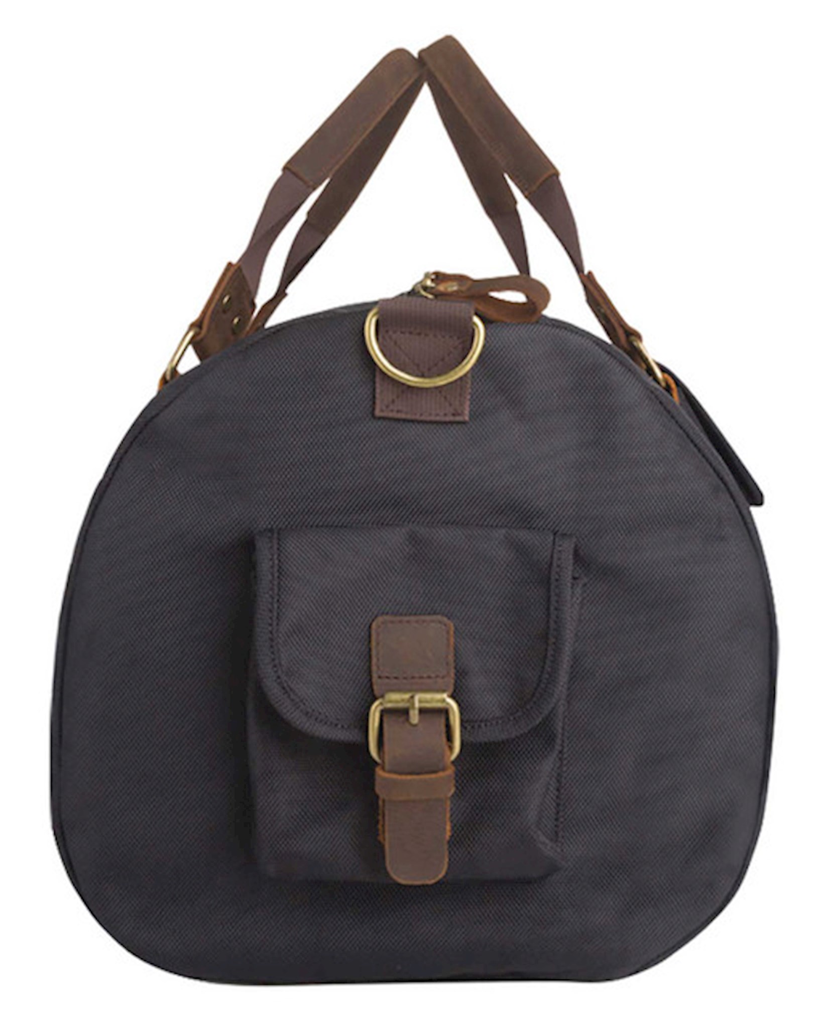 Made from super strong ballistic nylon with genuine crazy horse leather trim. Tear-resistant and water-repellent. Adjustable/detachable shoulder strap. Super roomy interior with side pockets. Size: 21" x 12" x 12".