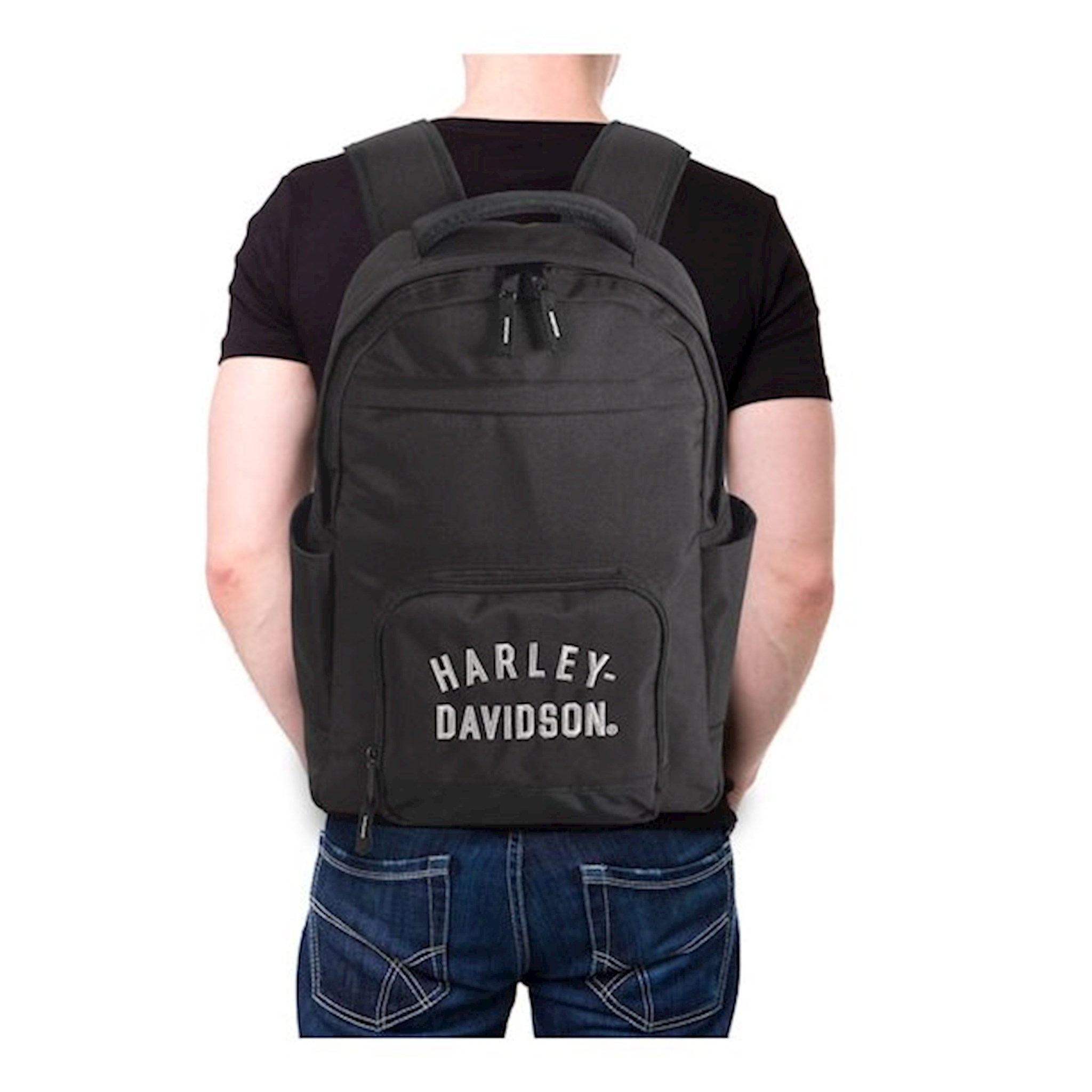 Casual, rugged water-resistant backpack for everyday adventures! • Made of hard working polyester twill fabric that is water-resistant and super strong. • Front organizer pocket with embroidered logo. • Top zippered accessory pocket. • Main compartment with padded laptop section. • Adjustable padded backpack straps with D-ring pull tabs for easy strap adjustment on the go. • Comfort cushioned back. • Side pockets.