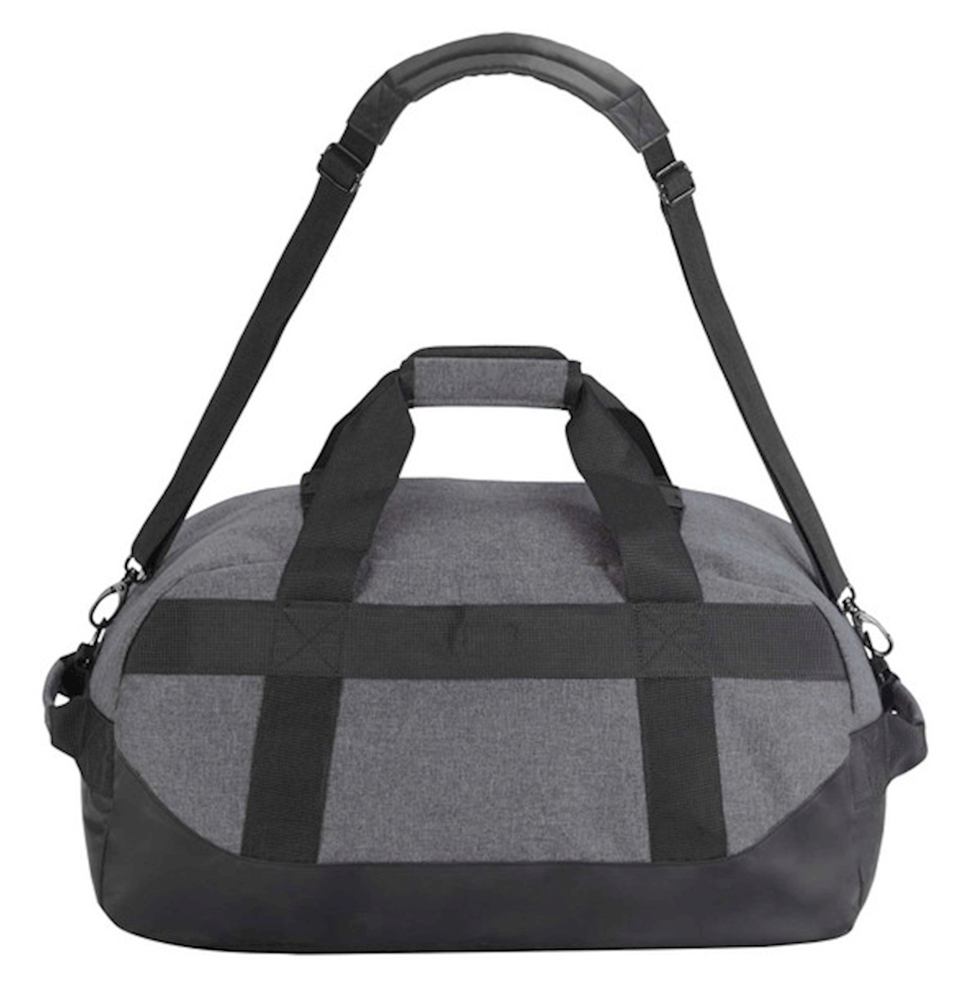Easily converts from duffel bag to backpack. Hideaway padded backpack straps and detachable adjustable shoulder strap. Front zippered accessory pocket and roomy main section. Can piggy-back over luggage handles. Size: 21" x 10" x 10".