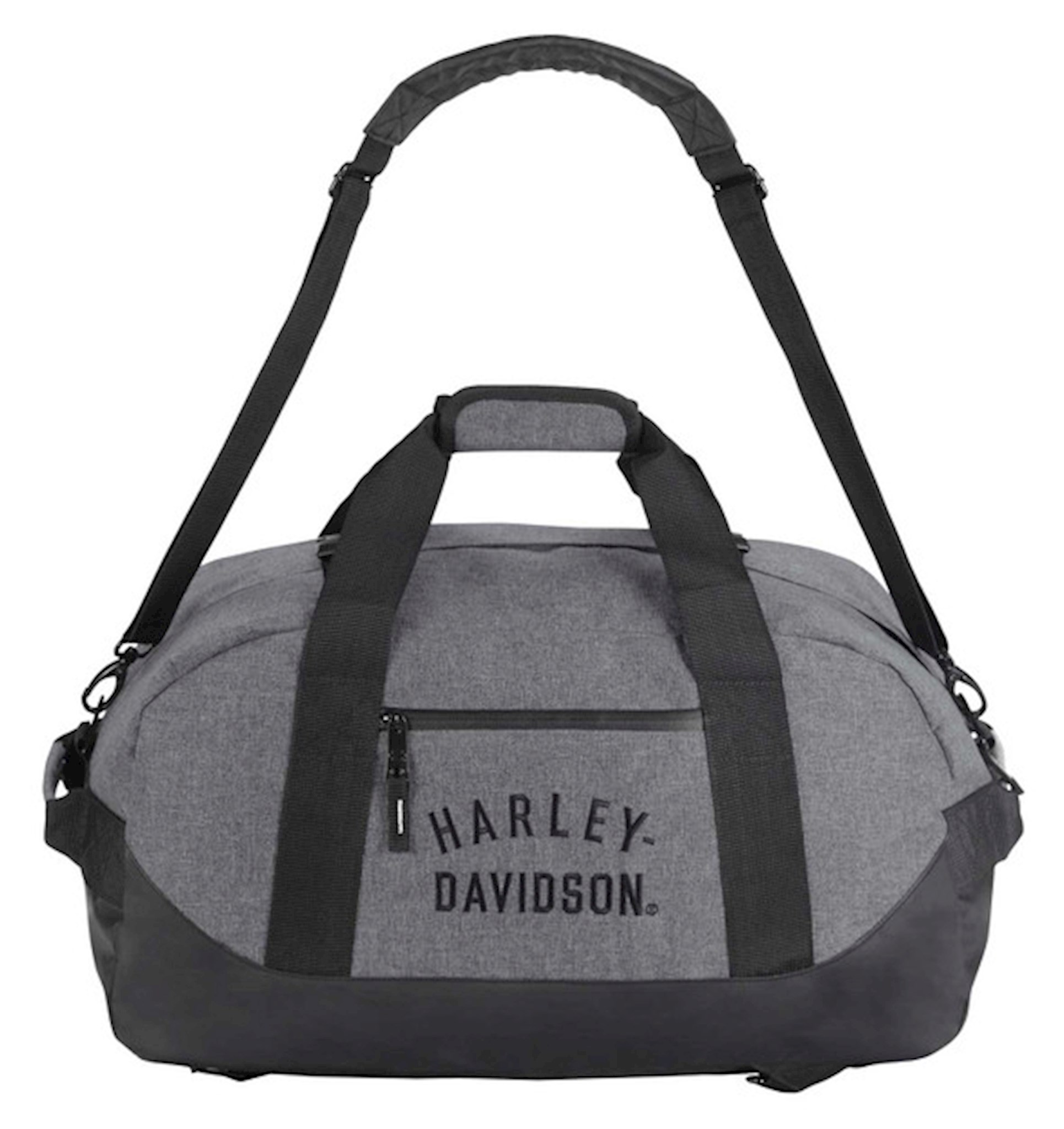 Harley-Davidson® Rugged Twill 21" Convertible Duffel/Backpack - Heather Gray, 90325 HG. Easily converts from duffel to backpack. Embroidered H-D logo. Front zippered accessory pocket and roomy main section. Detachable adjustable shoulder strap. Hideaway padded backpack straps. Top and bottom carry handles for easy lifting. Can "piggy-back" over luggage handles. Size: 21" x 10" x 10". Note: 21" size can be carried on board most commercial airlines.