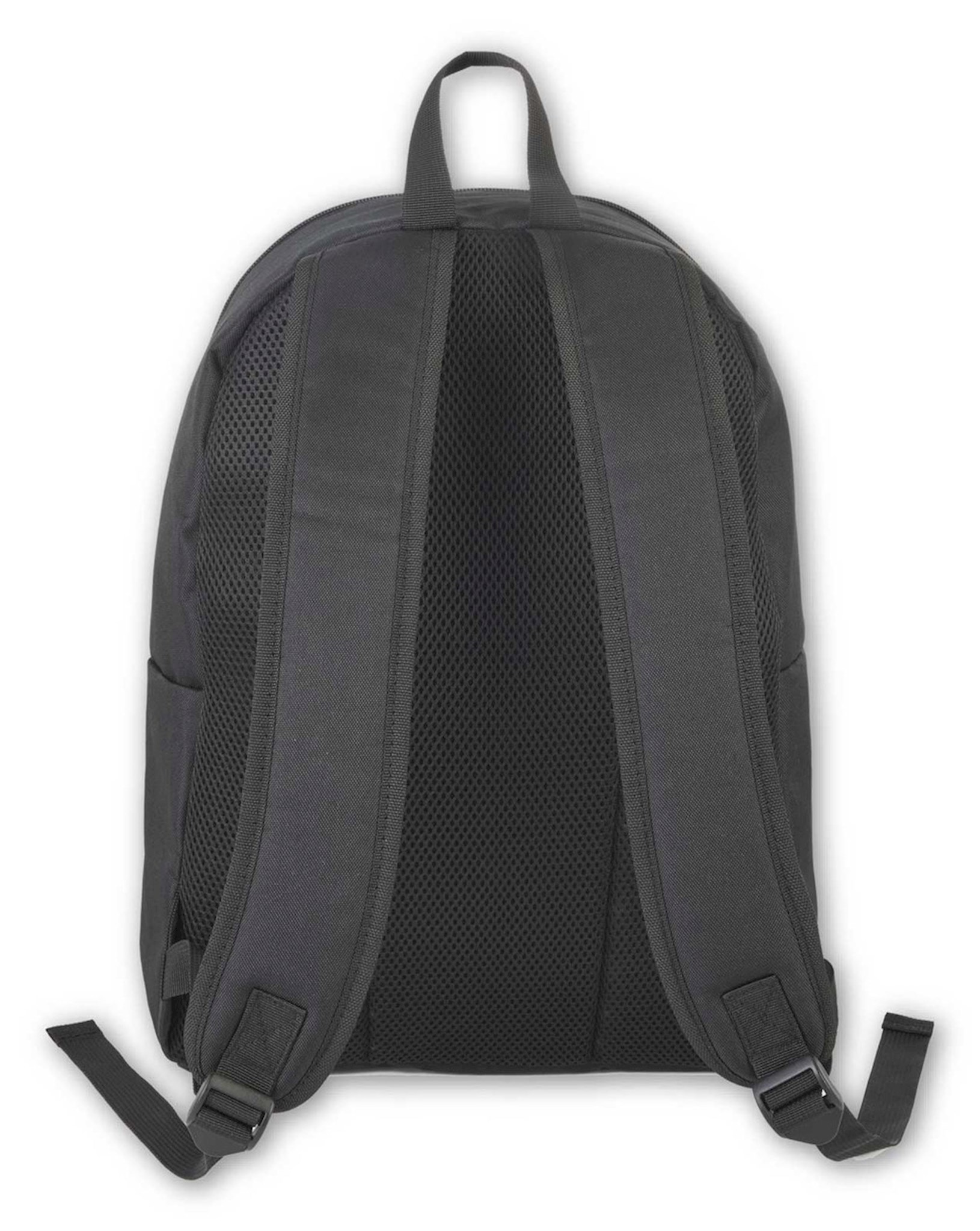 Rugged, high density polyester body Zippered main compartment Front accessory pocket Padded and adjustable backpack straps with top carry handle Size: 17" x 12.5" x 5"
