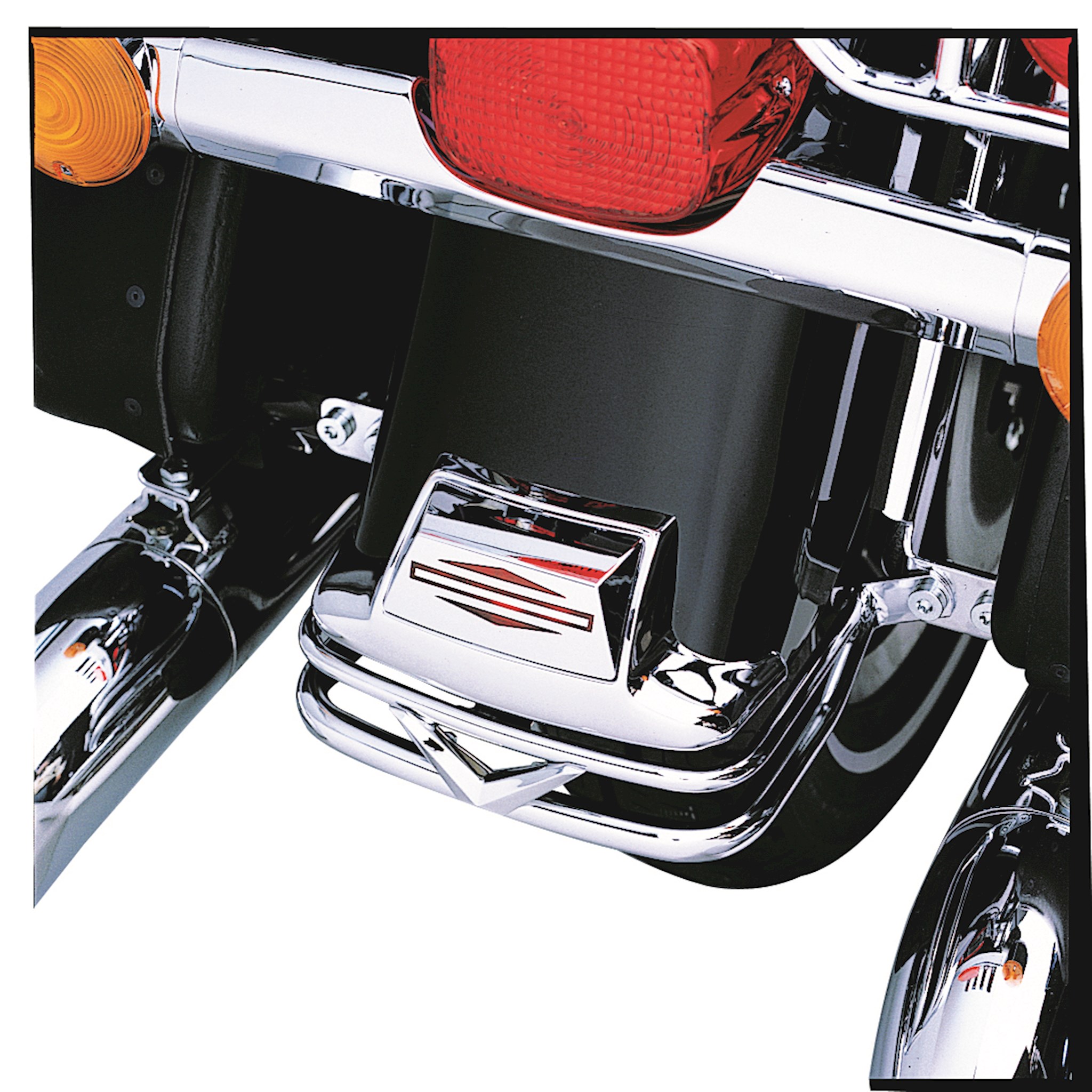 Designed with a similar styling theme to match our Touring V-Logo Front Fender Rail P/N 91099-94A. Replaces the stock rear fender rail and rubber bumper on Touring models. Chrome-plated twin tubes are crowned with a hand-polished and chrome-plated cast V-Logo reminiscent of the Harley-Davidson® 1953 Golden Anniversary medallion. Includes hardware and installation instructions.