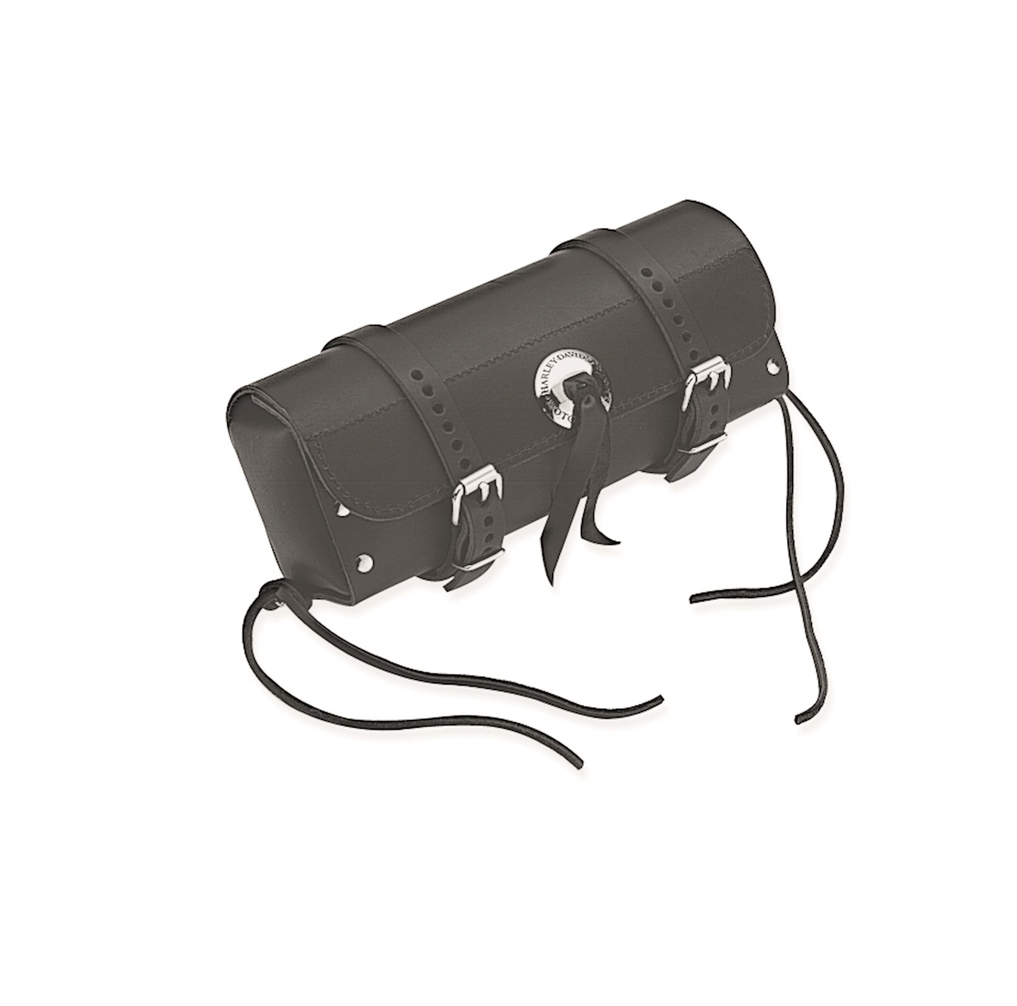 Heavy full-grain Latigo leather is specially tanned, oiled and waxed to withstand the elements. Identified with a custom Harley-Davidson® concho. 4.0" W x 4.0" D x 11.0" T.