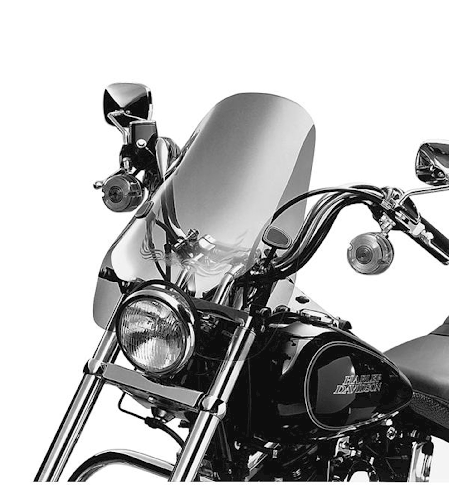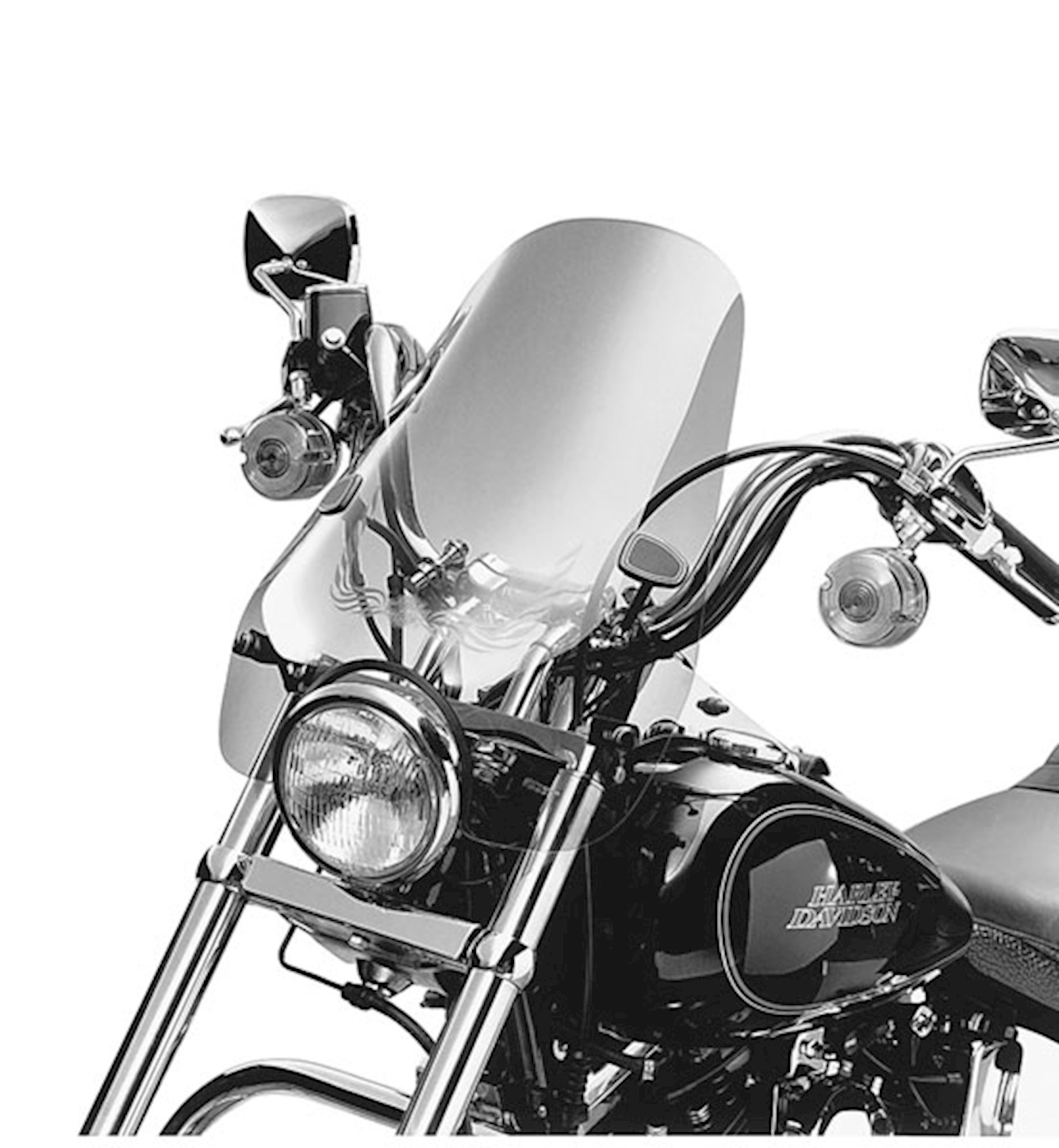 Formed of polycarbonate and hard-coated to resist scratching. Light smoke windshield is contoured to fit the headlamp and incorporates adjustable four-point mounting. Functional styling helps deflect wind to reduce upper body fatigue.