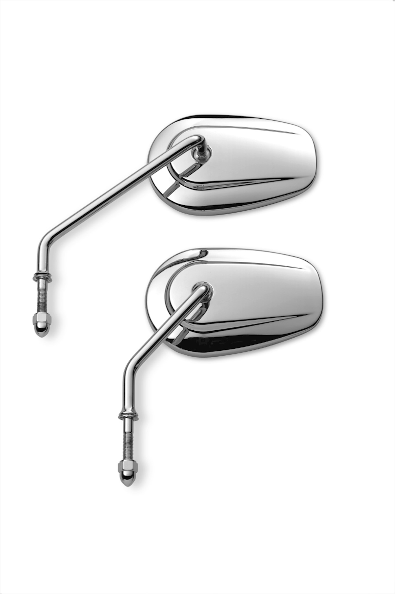 Update your Harley® motorcycle with the latest style in mirrors. This 2003-later Original Equipment style tapered mirror provides improves rearward visibility, offers a wider range of adjustment and eliminates the rear fasteners for a cleaner look. Available in your choice of satin black or chrome finish. Fits '65-later models (except VRSCF and XL1200X mounted below the handlebars).