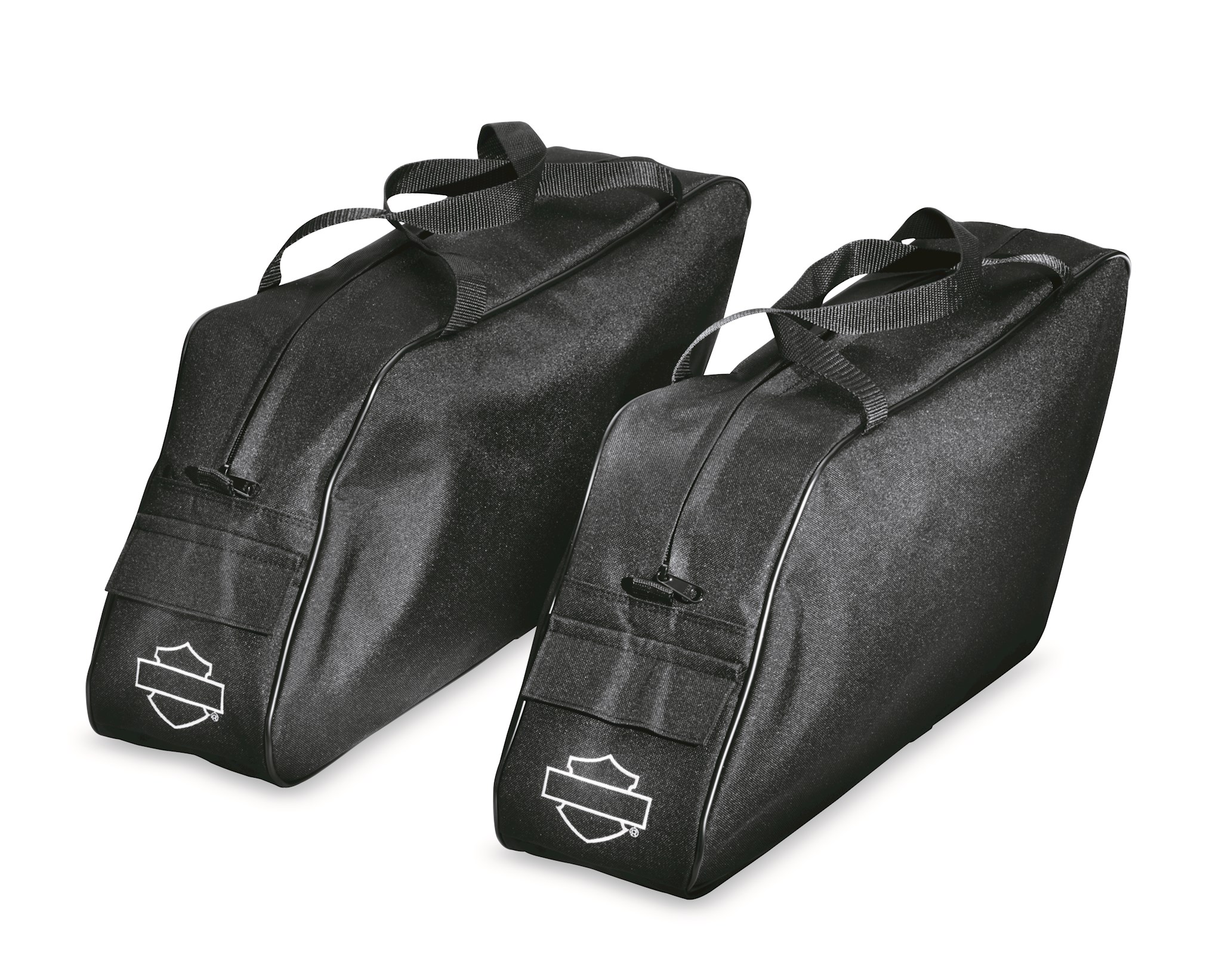 Simplify packing and unpacking your motorcycle. These well-constructed, water-resistant bags are designed to fit perfectly into Touring model luggage systems. The soft sides conform to the interior of the luggage to help use every available inch of space. Styled with a Bar & Shield logo, they feature heavy-duty zippers and convenient carrying handles.