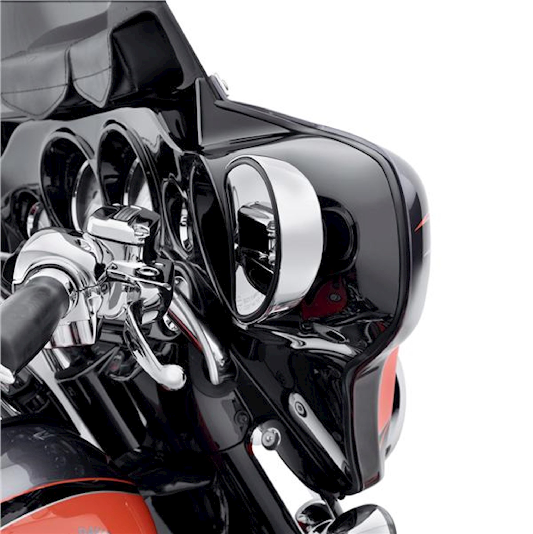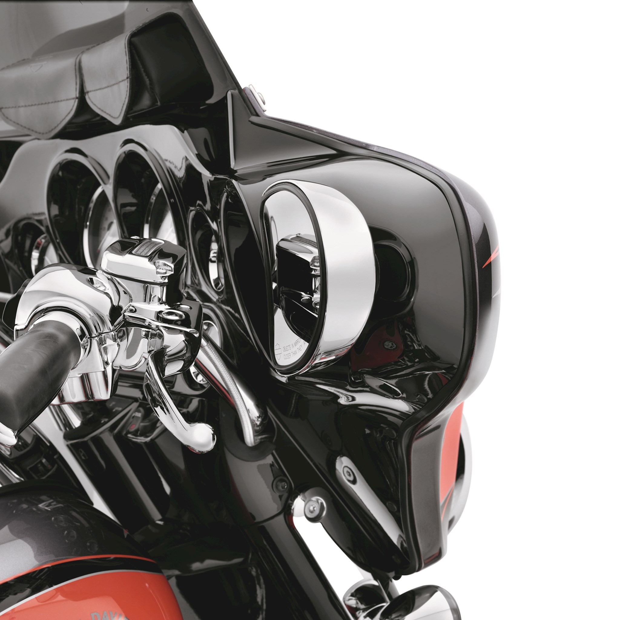 Add a splash of chrome to the inner fairing. The chrome-plated housings wrap around the back and side of the Fairing Mount Mirrors, presenting a clean, uncluttered profile. The perfect finishing touch to a fully dressed inner fairing.