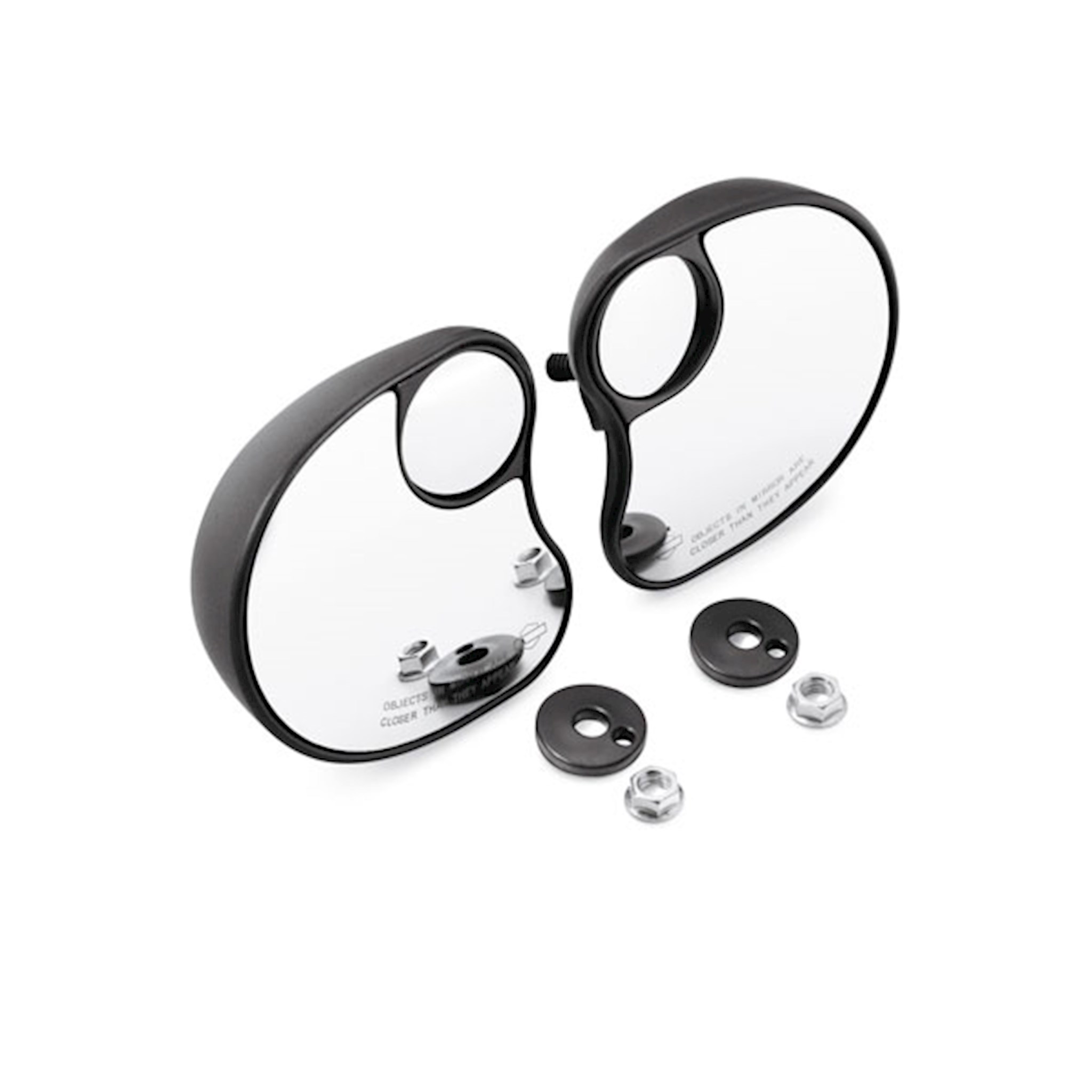 See even more of the world that you just passed. These exclusive-design Split Vision Mirrors minimize blind spots and provide a wide panoramic rear view of the left and right lane, and the road behind you. The mirrors feature a large primary panel for normal view, and a second outboard convex panel for a wider field of vision. Slightly larger than the standard-view Fairing Mount Mirrors, these Split Vision Mirrors offer the same full range of adjustability. A direct bolt-on replacement for standard-view Fairing Mount Mirrors, the kit also includes the hardware and mounting template required for easy and accurate installation on many models.