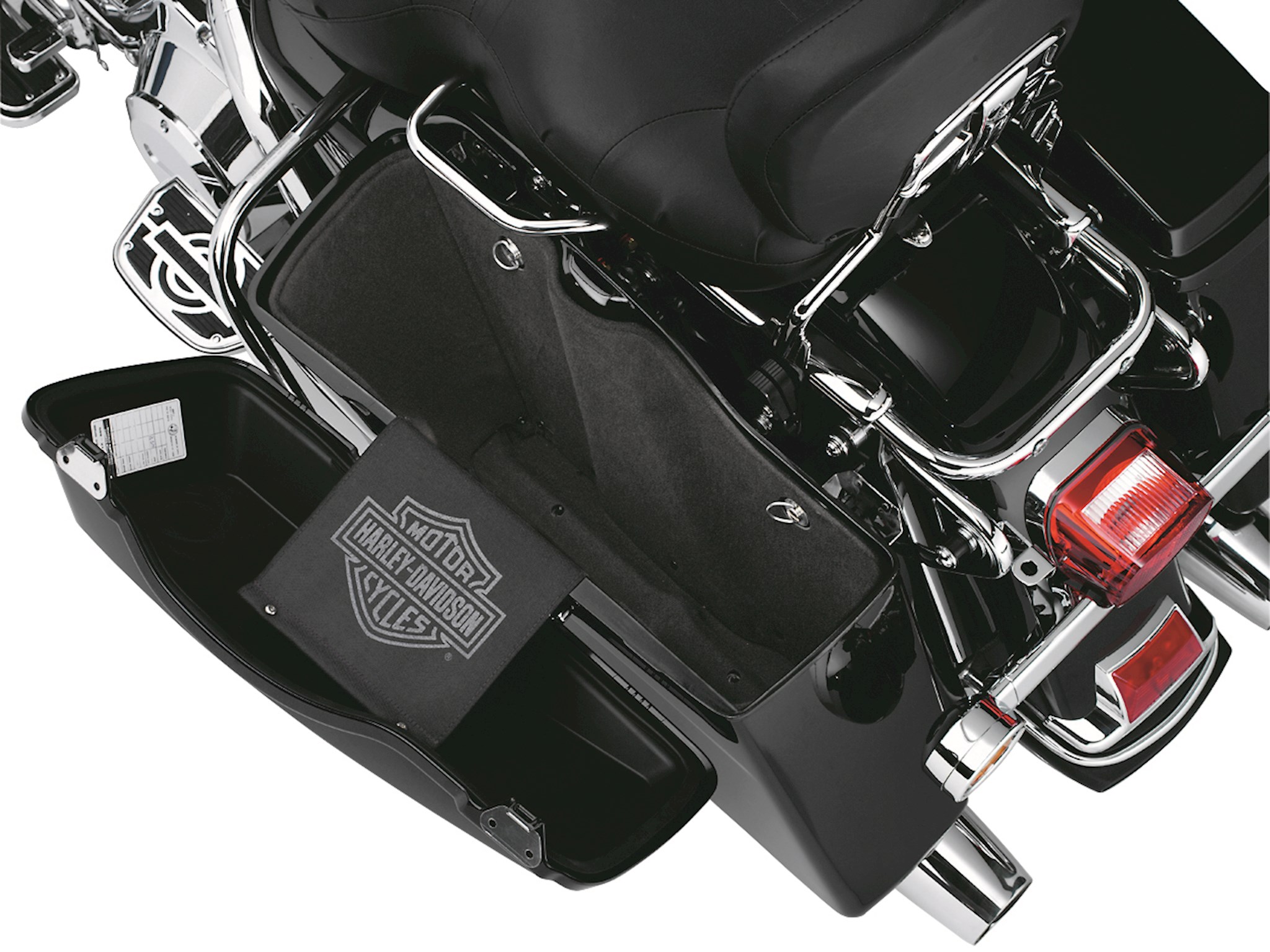 Protect your belongings and reduce noise and rattles on the road. Premium soft-touch felt-finish liner is formed to the hard saddlebag interior for a perfect fit. Molded base and sides maximize the interior room, and one-piece design allows easy removal for cleaning and maintenance.