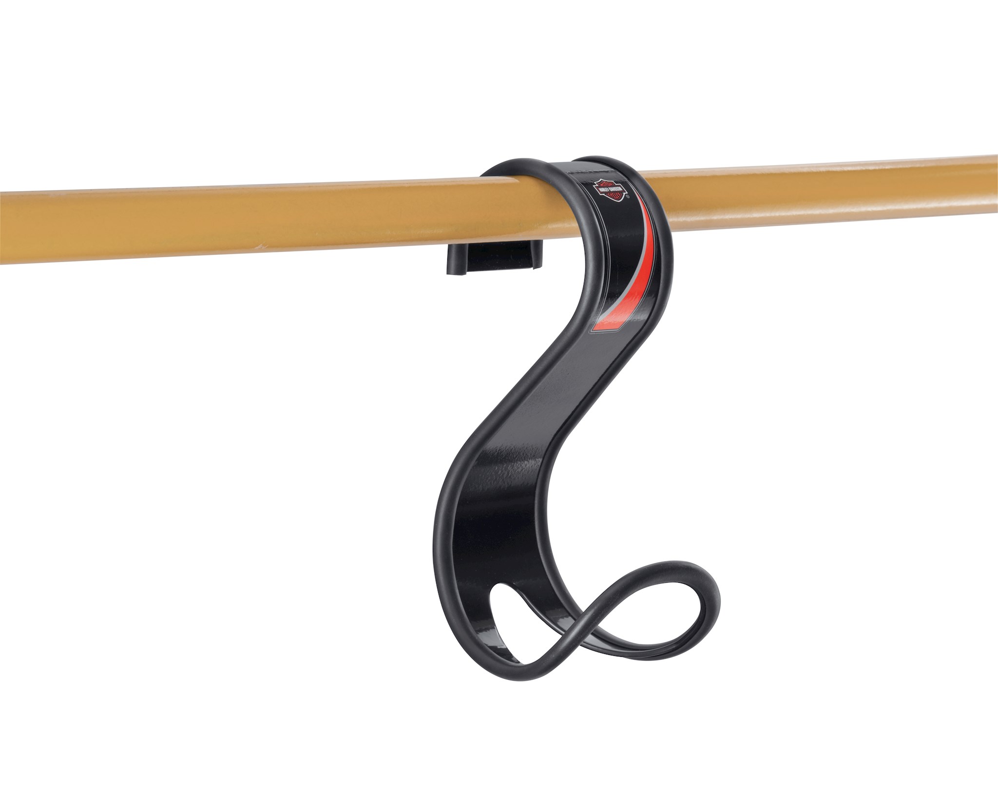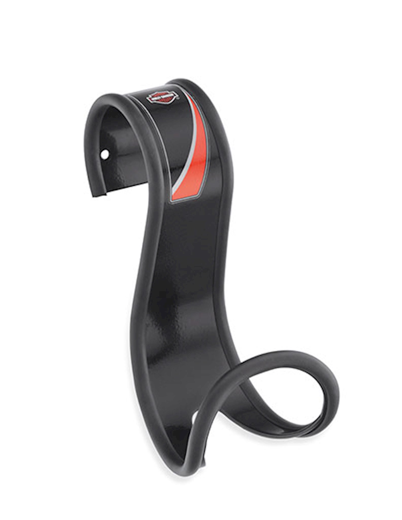 Proudly display your collection of helmets. Harley-Davidson Helmet Hangers keep your expensive helmet safe and out of the way. Designed to accommodate all types of helmets, these Helmet Hangers allow air to circulate inside to keep the liner fresh and dry. The rigid steel hooks feature a durable e-coated surface and soft rubber edges to protect the finish of the helmet. The wall-mount J-Hook design can be secured to a trailer wall, garage wall or most any flat surface. The universal S-Hook design hangs on doors, cubical walls and closet rods.
