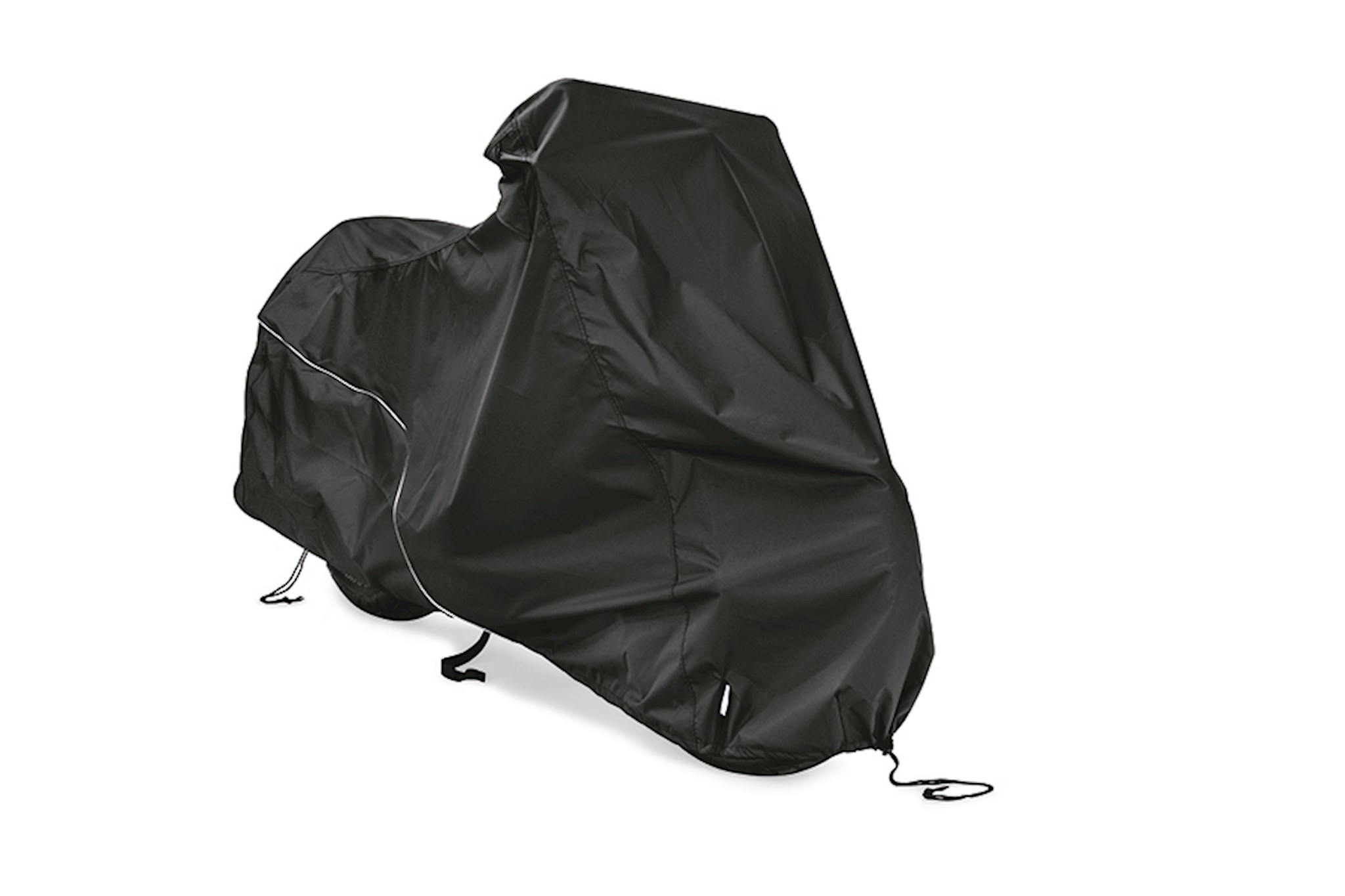 Now available in a compact size to fit Harley-Davidson Street and Sportster models, these covers guard your bike from Mother Nature. Perfect for a bike that is exposed to the elements, this heavy duty cover is manufactured from diamond-pattern 300 Denier fade-resistant polyester and features taped seams for water resistance. The weather-shielded vents in the top of the cover promote air circulation to reduce moisture build-up and minimize corrosion during short or long term storage. Internal heat-resistant panels protect the cover from warm exhaust and an integrated storage pouch permits convenient packing when not in use. The cover skirt features front and rear adjustable drawstrings to cinch the cover around the bike and a convenient belly strap to reduce ballooning in the wind. Cover features a convenient opening near the front wheel for a security chain or cable and internal pockets that accept the optional Cover Alarm (P/N 69000038). Available in your choice of two-tone orange and black or inconspicuous plain black finish, the covers features reflective piping for added visibility. *NOTE: H-D motorcycle covers are not designed to be used while trailering. Using an H-D motorcycle cover while trailering may cause the cover to tear, possibly causing damage to the cover and motorcycle.