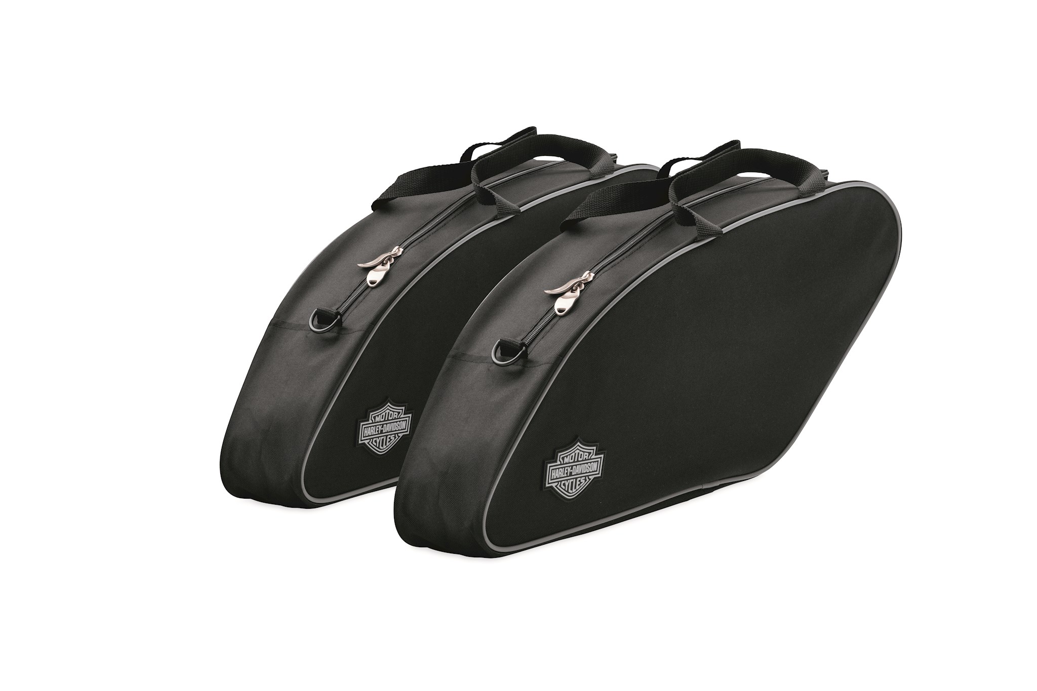 Simplify packing and unpacking your motorcycle. These well-constructed water-resistant bags are designed to fit perfectly into the Sport Glide model’s saddlebags. The soft sides conform to the interior of the luggage to help use every available inch of space. Styled with a Bar & Shield logo, these bags feature heavy-duty zippers, comfortable carrying handles and convenient D-rings for optional shoulder straps.
