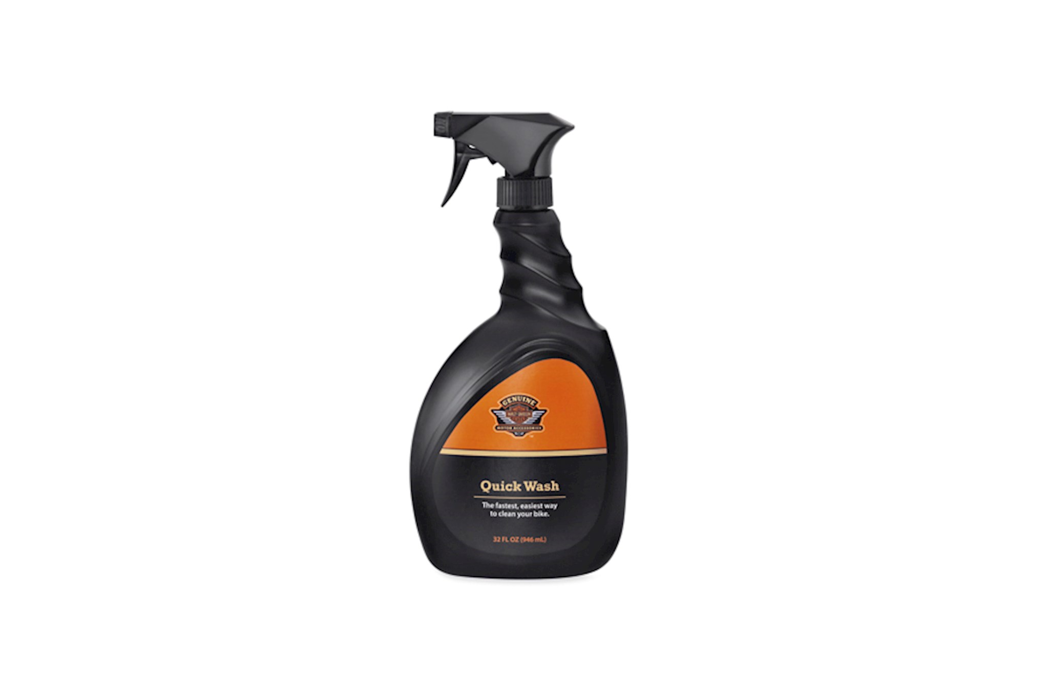 Fast and easy to use, Quick Wash is tough on dirt, oil and bugs, but gentle on other surfaces. This all-over bike cleaner is safe for use on all surfaces of your motorcycle and does not strip wax, corrode fasteners or spokes or stain leather and vinyl seats and saddlebags. Just spray it on and hose it off. Quick Wash gets into hard-to-reach spaces and cleans without scrubbing. Sheeting action rinses clean and prevents spotting. Available in easy-to-handle trigger pump bottles and convenient refill containers. 32 fl oz (946 ml) Trigger Bottle.
