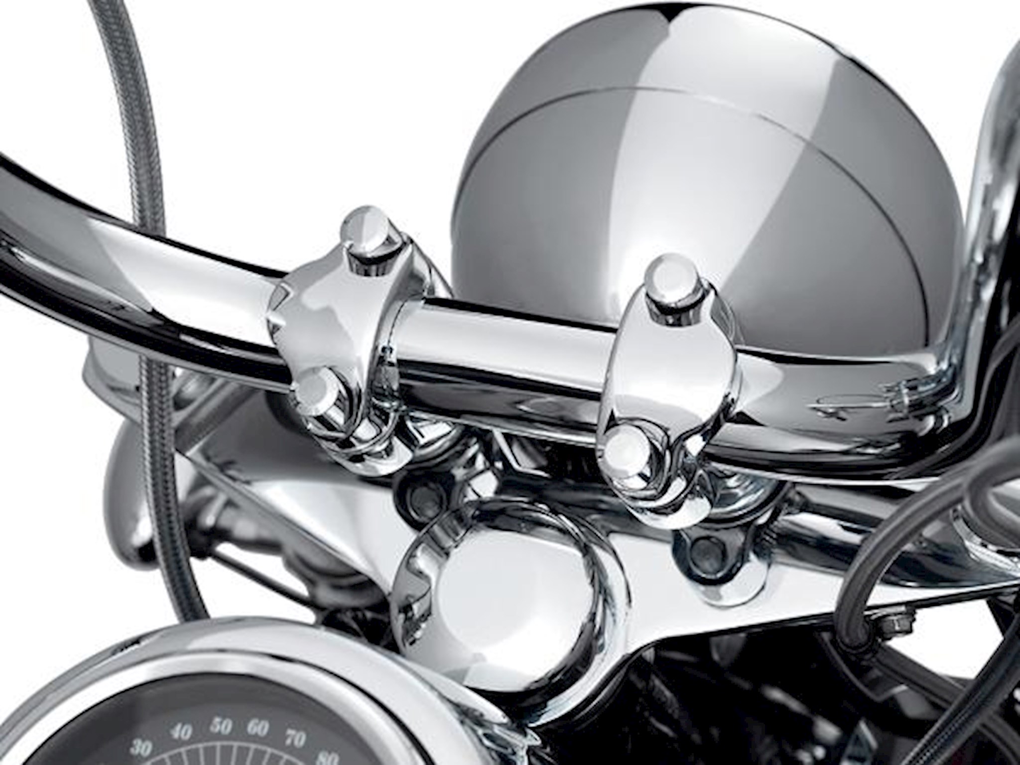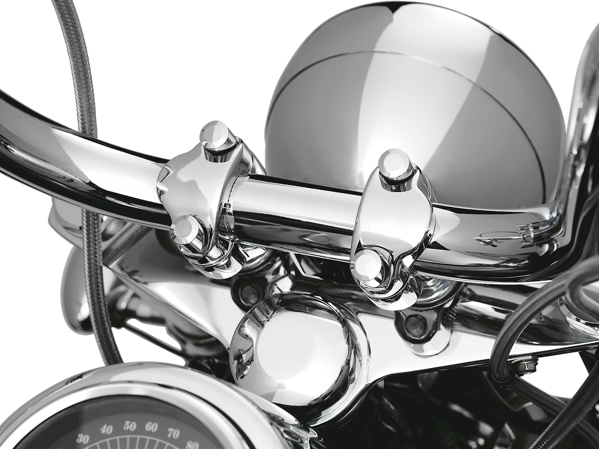Complete the chrome hand control conversion. These thin-wall bolt covers are designed for easy installation over handlebar clamp bolts. The machined brass and chrome-plated covers are corrosion resistant and the internal spring steel retention clip resists vibration and thermal cycling to securely hold the covers in place. Kit includes 4 covers.