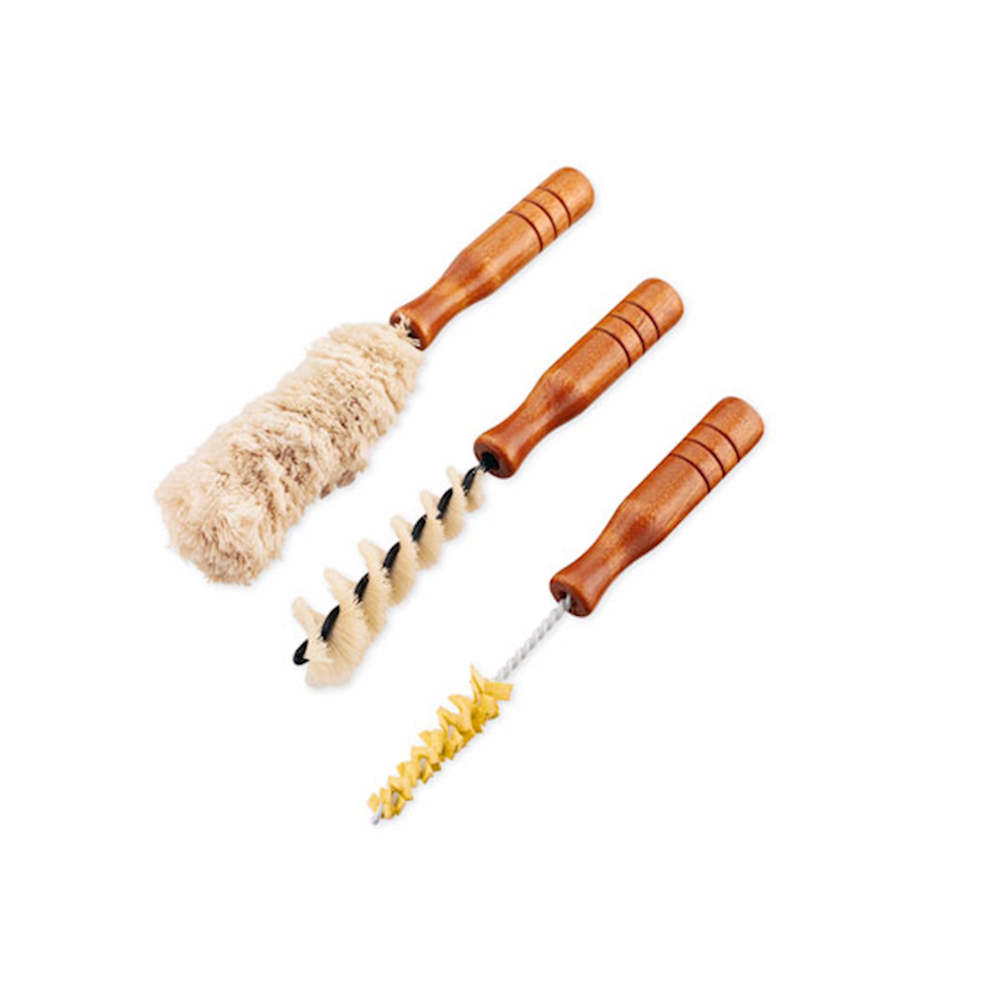 Make every corner of your bike shine. This set of 3 wood-handled cleaning brushes helps you reach into the tightest places. The chamois brush gently scrubs in between engine fins or can be used after rinse to soak up hard-to-reach water. The reverse spiral brush is perfect for cleaning tire sidewalls or those hard-to-reach spaces elsewhere on your bike, and the soft mop brush will leave your chrome streak free. All brushes have vinyl-coated wires to prevent scratching.