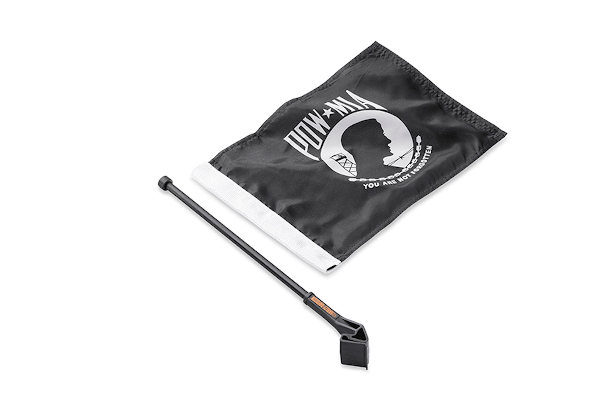 Show support for the American POW and MIA military forces with this flag and mast kit. Flags are made with high-quality nylon for durability. Available in sissy bar mount or Tour-Pak Luggage Carrier/Saddlebag mount versions. (Flags are designed for parade use only and will not withstand high-speed use.)