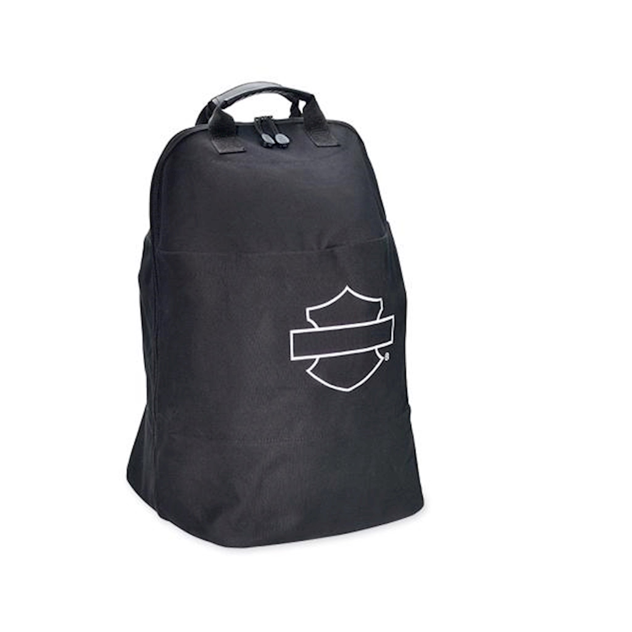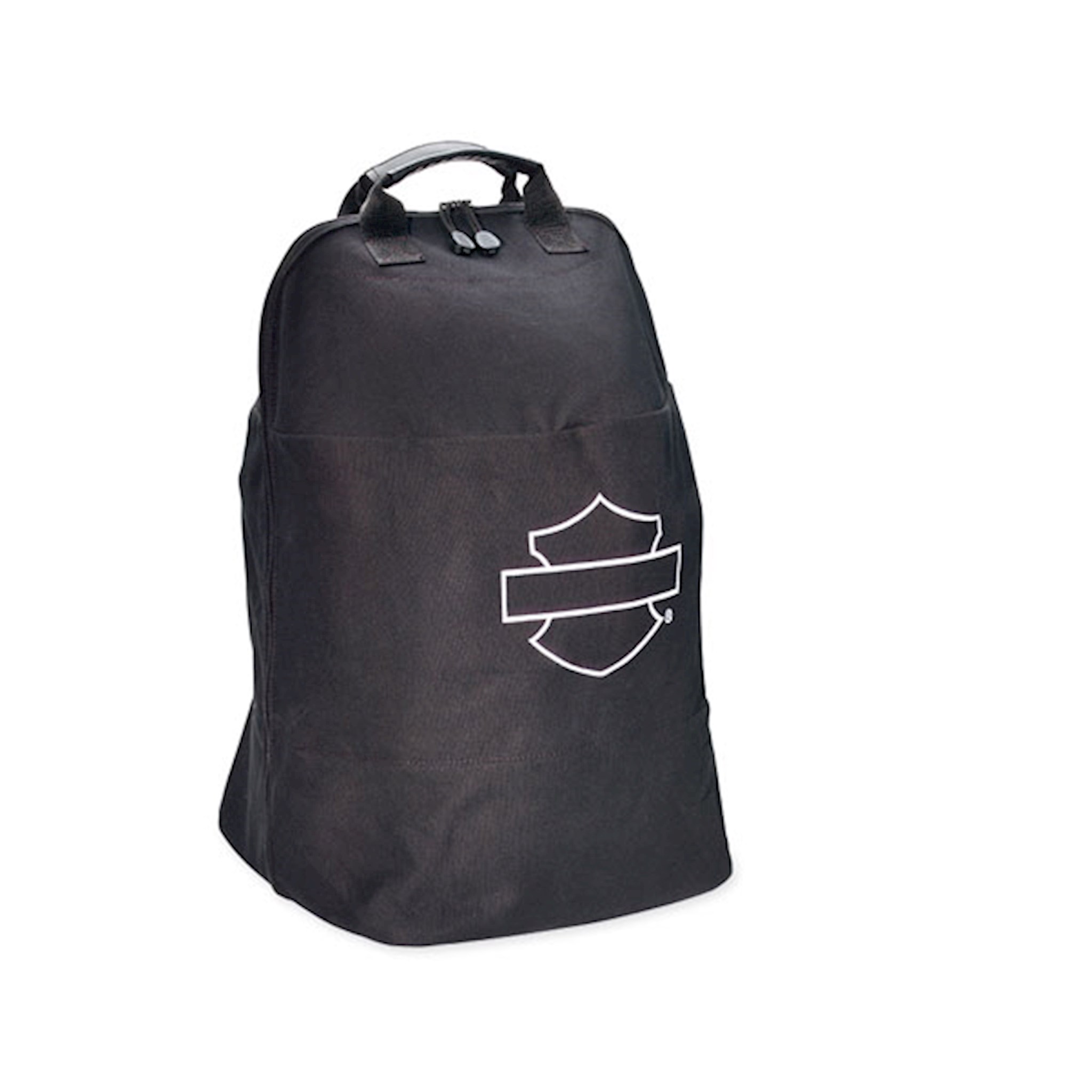 Protect your fairing lowers when they are removed for hot weather riding. This convenient storage bag features a heavyweight 10-oz. cotton exterior and sturdy carrying handle. Dual zippers open to expose a soft felt interior with a sturdy divider for left and right lowers and two zippered pouches for loose hardware storage. A classic embroidered Bar & Shield logo adorns the bag's exterior.