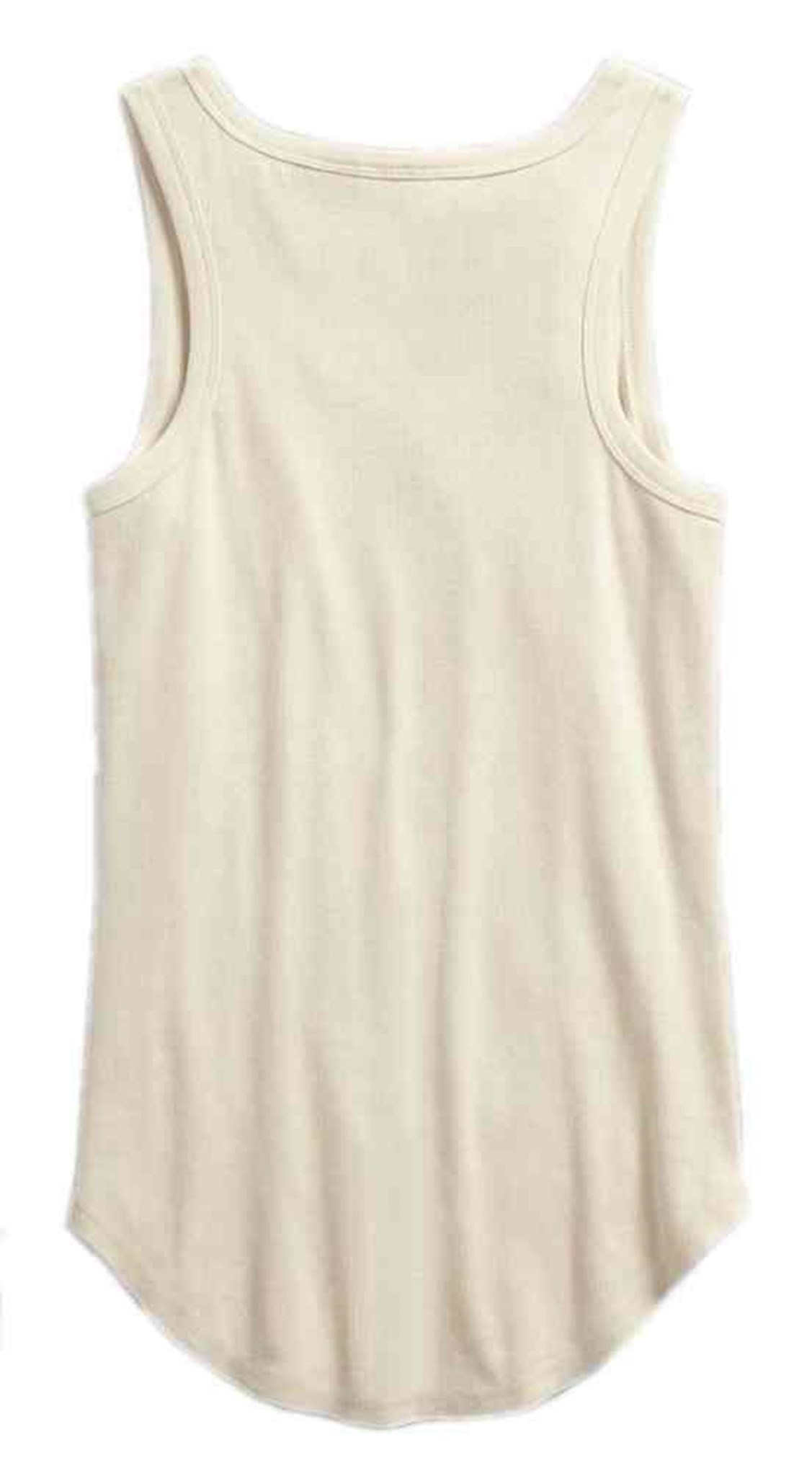 Harley-Davidson® Women's H-D Spirit Sleeveless Tank Top, 96009-18VW. Made of 95% cotton, 5% spandex, this tank is soft with just enough stretch. With a ribbed design, this tank is the perfect addition to any outfit. The soft white will match almost anything in your wardrobe. Features a scoop neck, raw edged hem, and printed graphics on front.