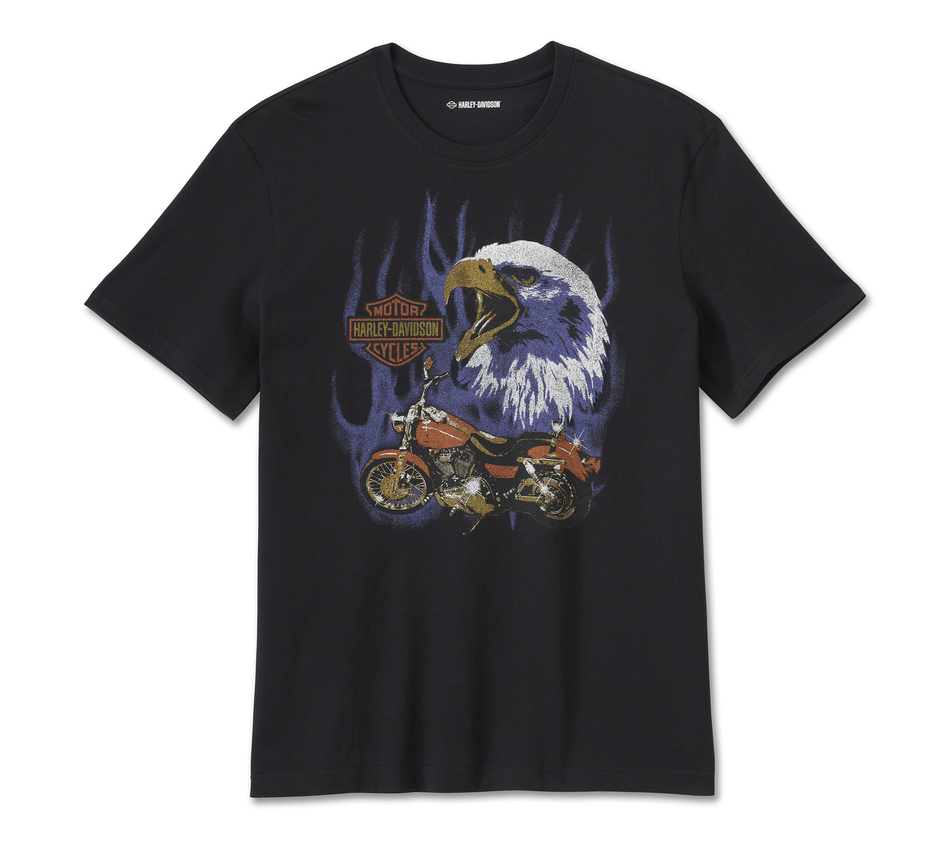 Materials- 100% cotton midweight jersey. enzyme washed. Design details- Rib knit neckline. Graphics - Soft hand print. Colour - Harley Black.