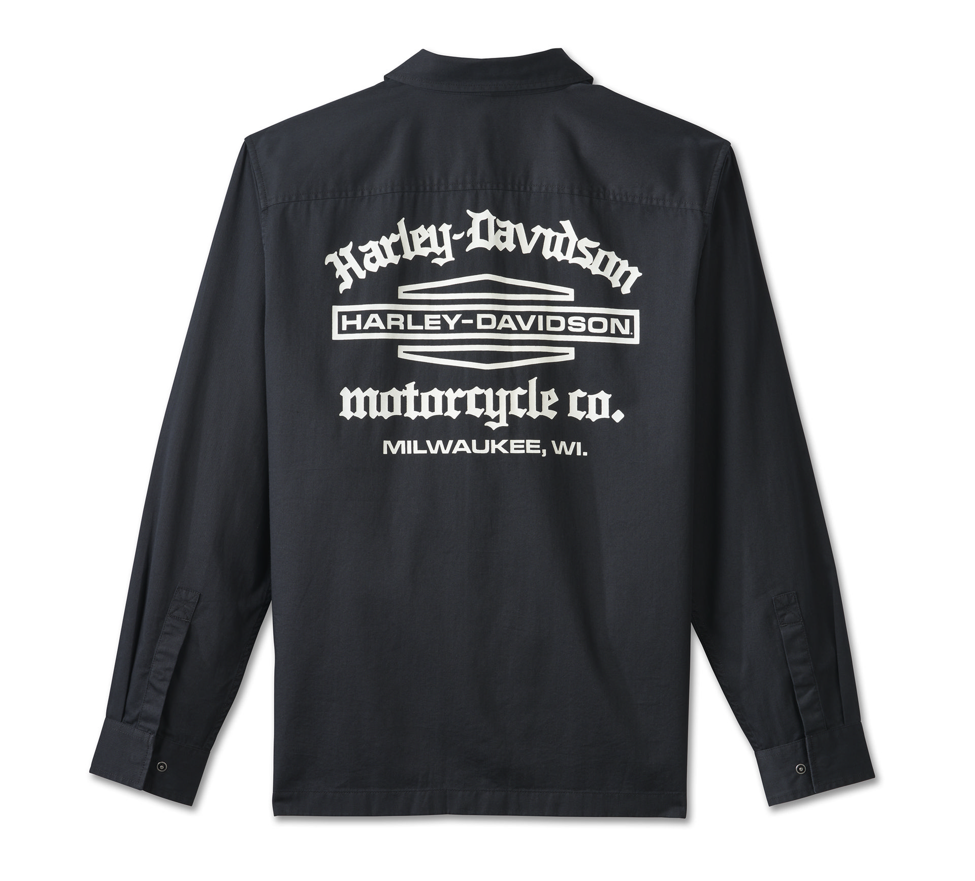Je ziet er strak uit en eert onze rijke geschiedenis in het Wrench Crew Mechanics Long Sleeve Shirt. Gemaakt van lichtgewicht maar robuuste katoenen keperstof die is gewassen voor zachtheid en een versleten gevoel. Deze button-down voor heren heeft zakken met drukknopen en een kraag met verborgen drukknopen die niet onder je motorkleding flapt. Onze graphics zijn subtiel aan de voorkant en all-in aan de achterkant voor een look die onmiskenbaar Harley-Davidson is. Ken de geschiedenis - het gestapelde Bar & Shield-logo op dit shirt dateert uit 1963 toen het horizontaal werd verlengd om beter op de benzinetanks van onze motorfietsen te passen.