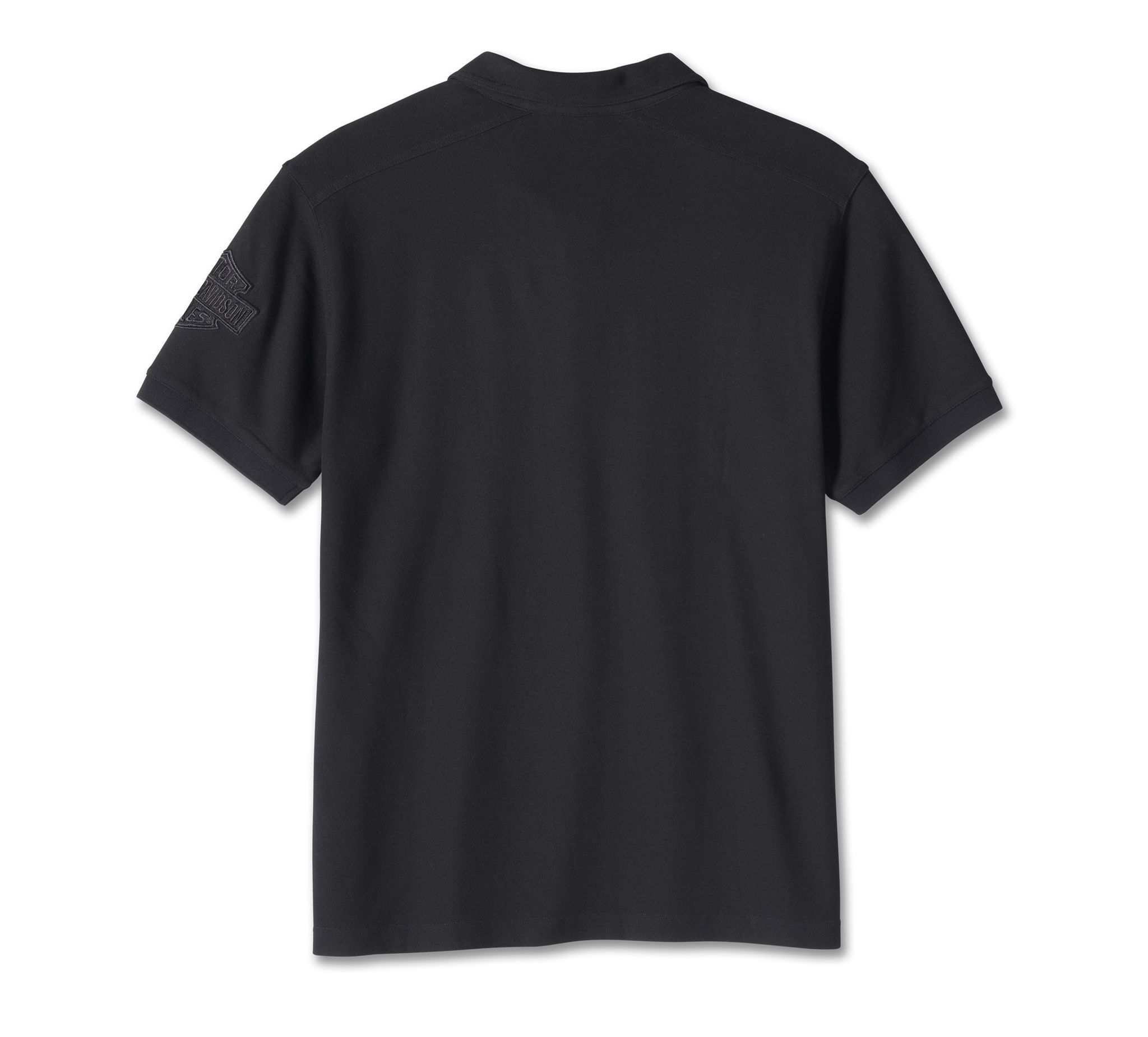 Harley-Davidson® Men's HD-MC Polo63% cotton, 37% polyester midweight pique, enzyme washed. Quarter-button front. Rib-knit sleeve hems.