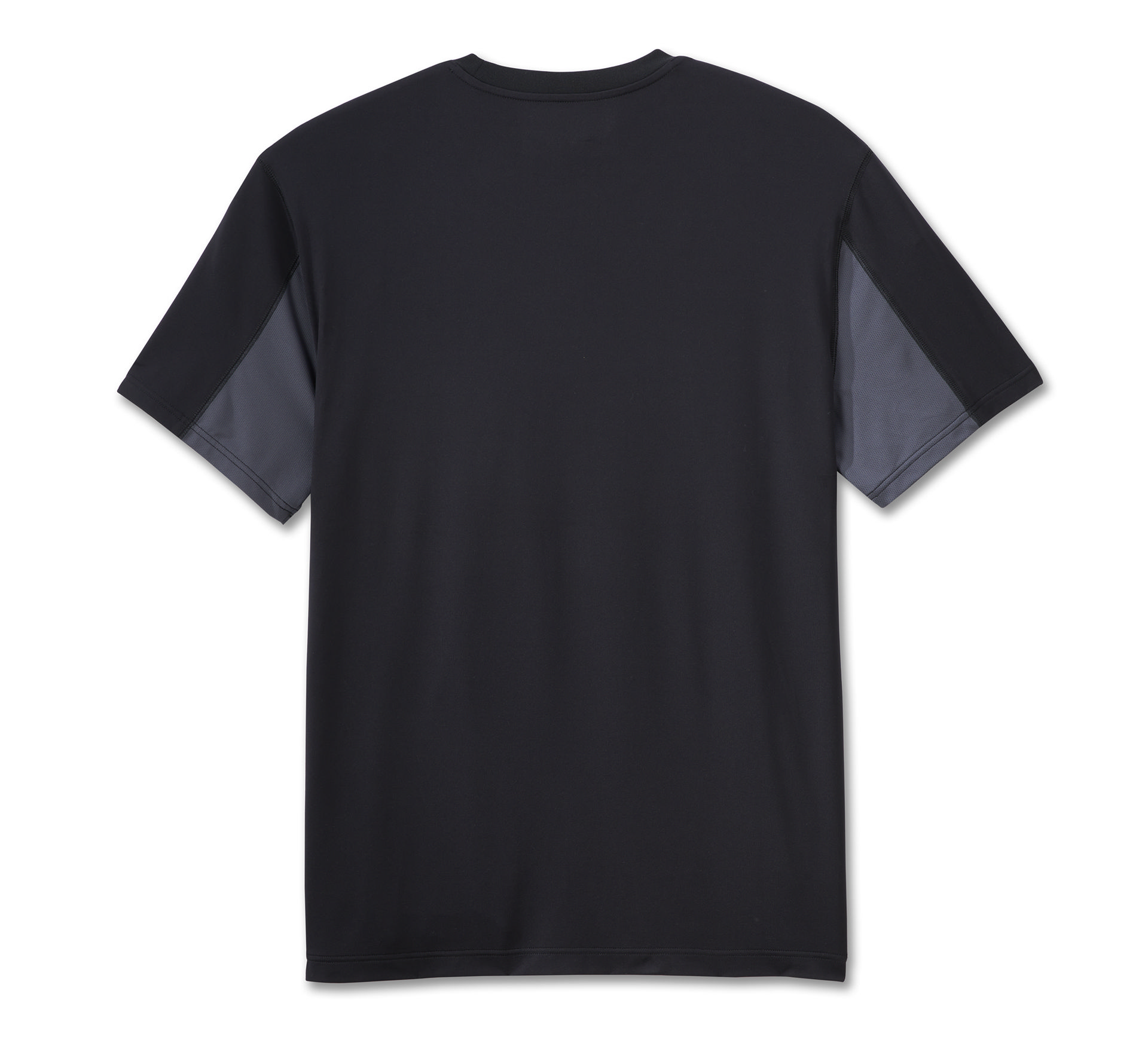 Onze H-D TECH Mesh T-shirt combineert een trow-back stijl met vooruitstrevende prestaties. Dit T-shirt is gemaakt van een antimicrobiële mix van polyester en spandex zodat het langer fris blijft. De mesh piecing reguleert het zweten. Dit T-shirt met korte mouwen voor mannen heeft contrasterende stukken en graphics die lijken op onze olieblikken uit de jaren 1930.
