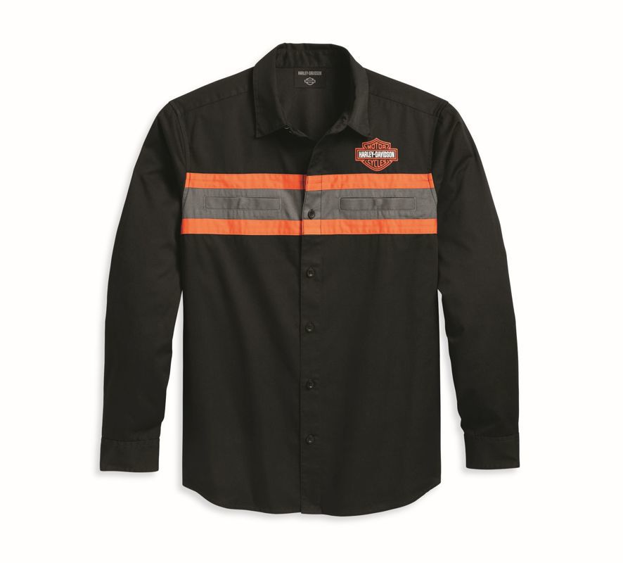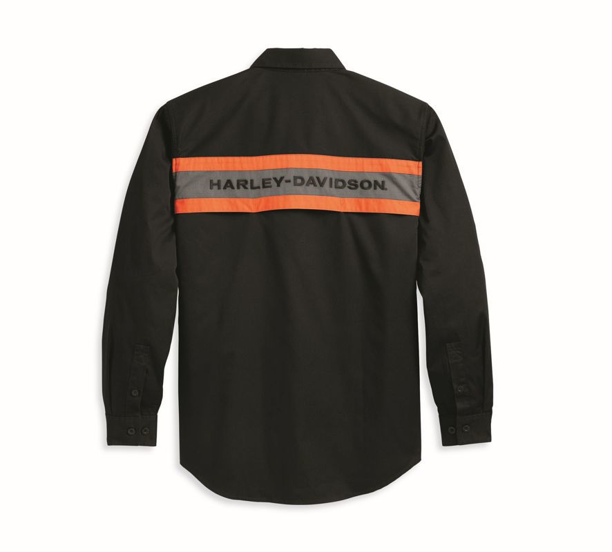H-D-stijl heeft een verstandige kant in ons Limited Edition Harley Performance Shirt. Dit button-down overhemd met lange mouwen is gemaakt van een stevige mix van katoen en polyester twill die is gewassen voor zachtheid. Met een bovenwerk van mesh aan de achterkant om meer lucht binnen te laten en zweet te weren, plus een verborgen kraag met drukknopen die goed blijft zitten tijdens het rijden. De gedurfde patchwork en geborduurde branding creëren een vrijheidslievende look die onmiskenbaar Harley-Davidson is. Grijp de jouwe nu het nog kan, want dit shirt is maar een beperkte tijd verkrijgbaar.