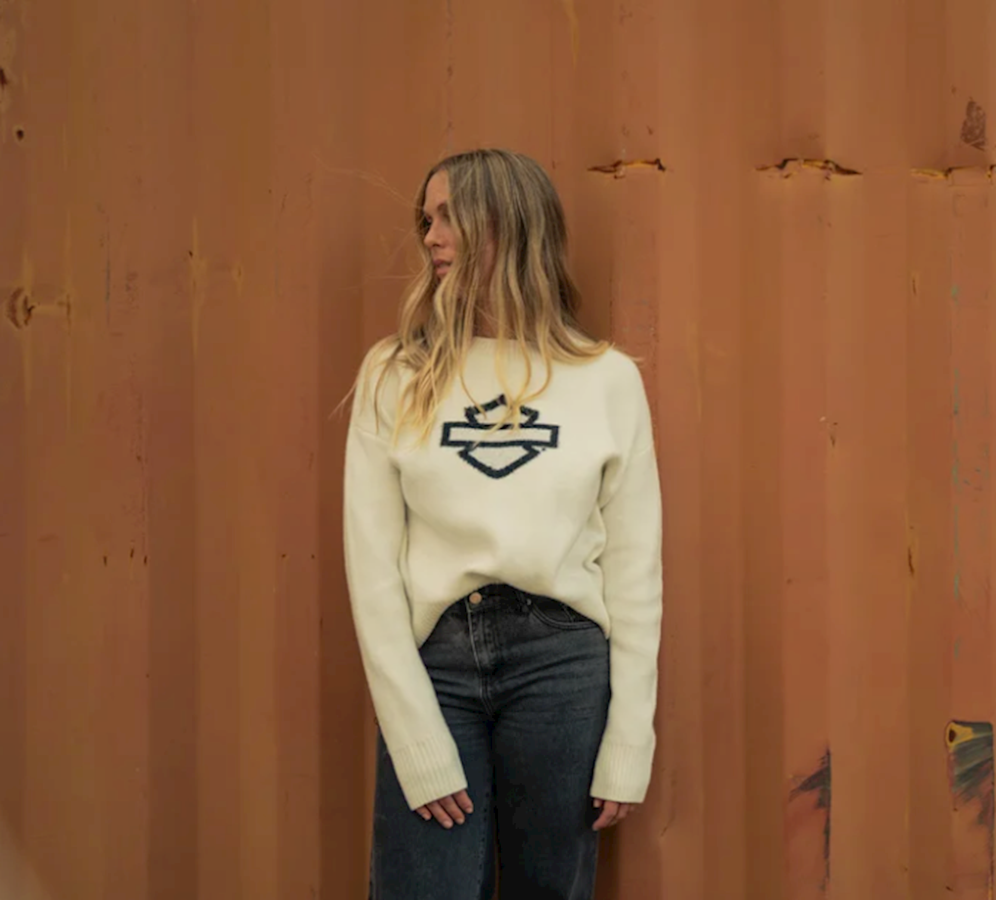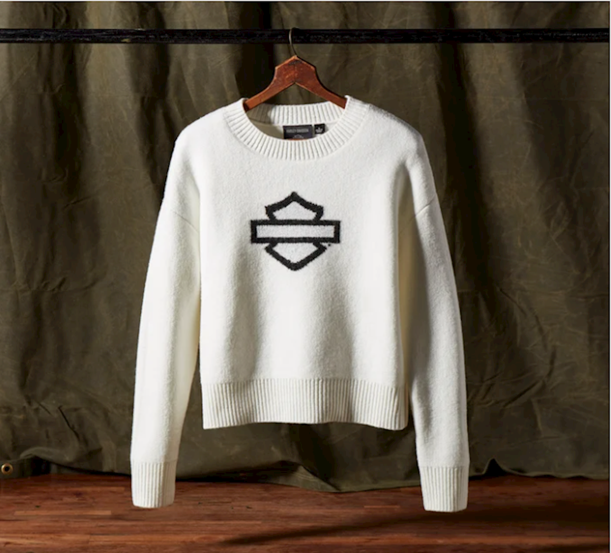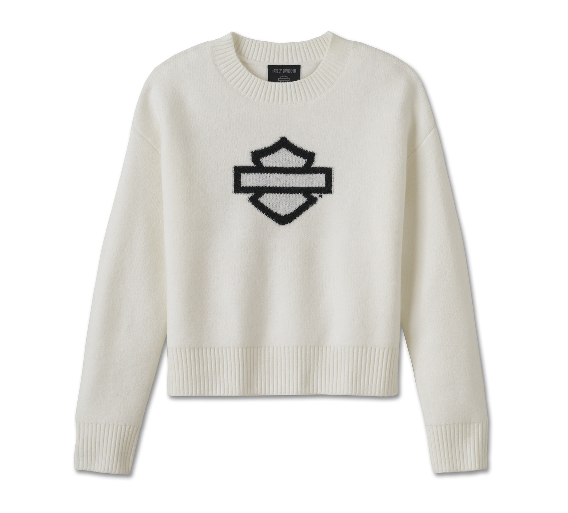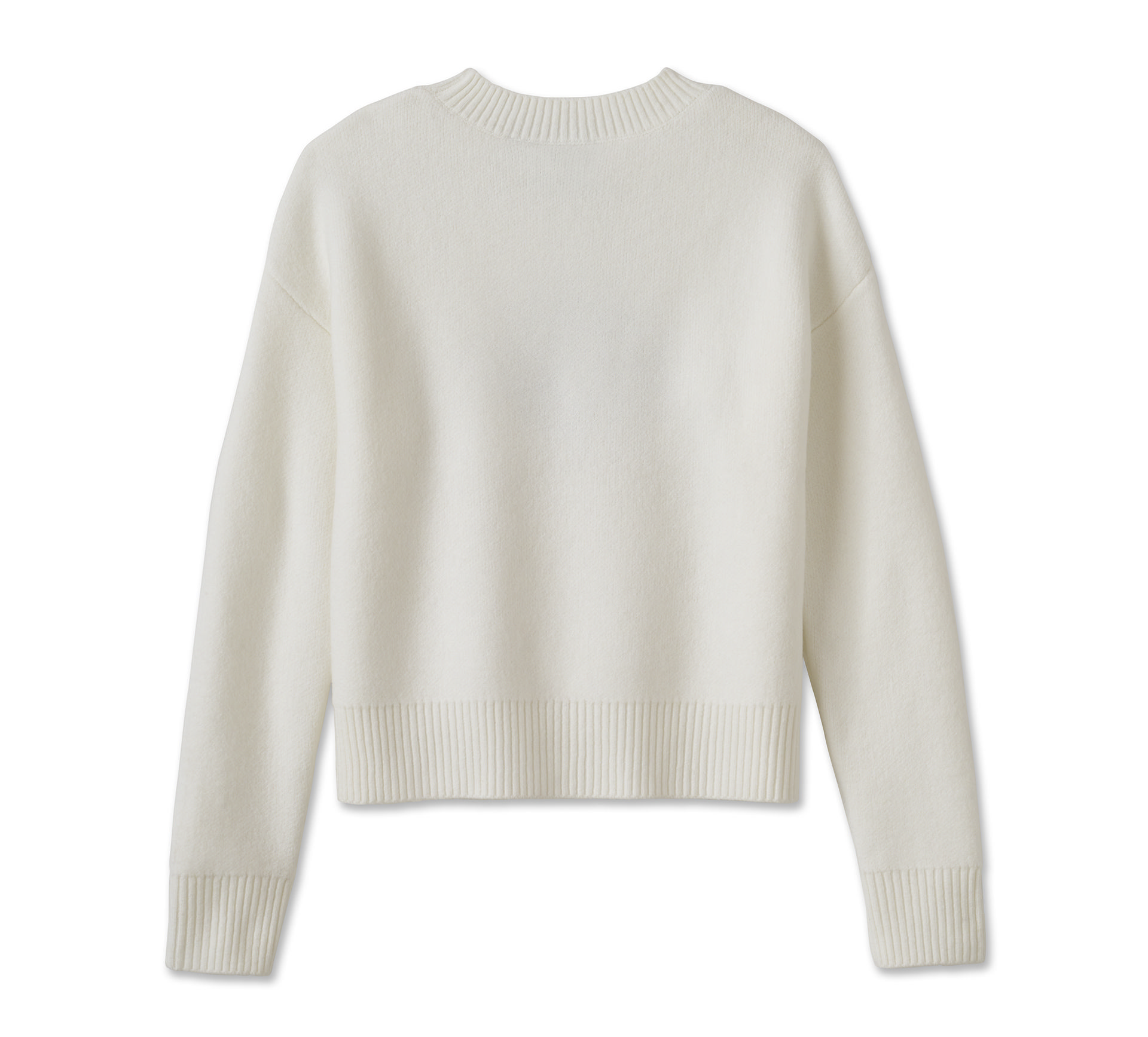 57% polyester, 26% acrylic, 14% nylon, 3% spandex midweight yarn. Rib-knit crew neckline, cuffs and hem.