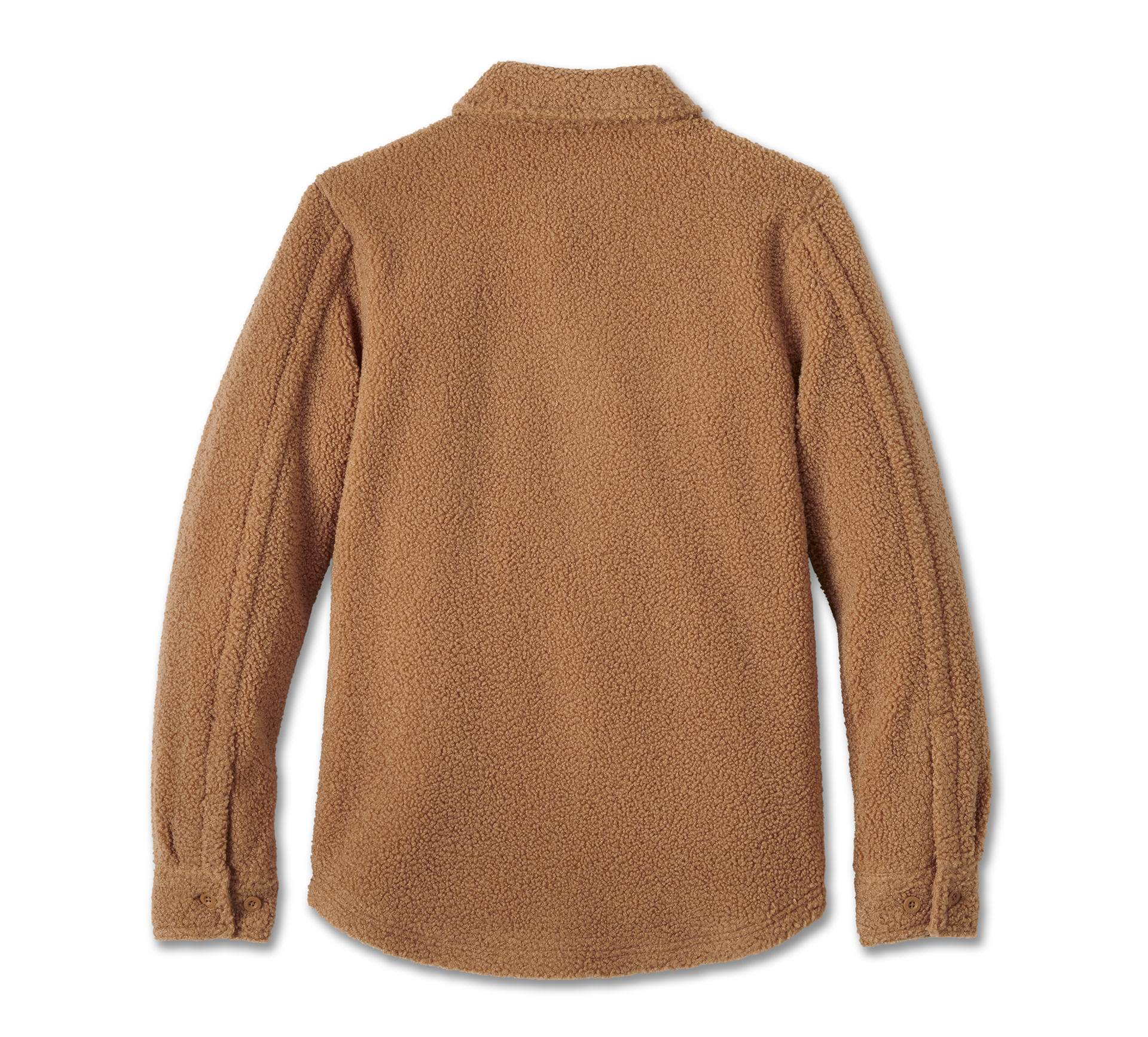 Comfy winterstijl krijgt een H-D-upgrade op ons Limited-Edition Harley-Davidson® Sherpa Shirt Jacket. Gemaakt van zwaar polyester gekrulde sherpa en gevoerd voor comfort. Deze buitenlaag voor dames is voorzien van borst- en handwarmerzakken, plus een kraag met drukknopen die onder je motorkleding blijft zitten. Minimale branding met een vleugje borduursel op de voorkant. Bestel nu zolang de voorraad strekt.