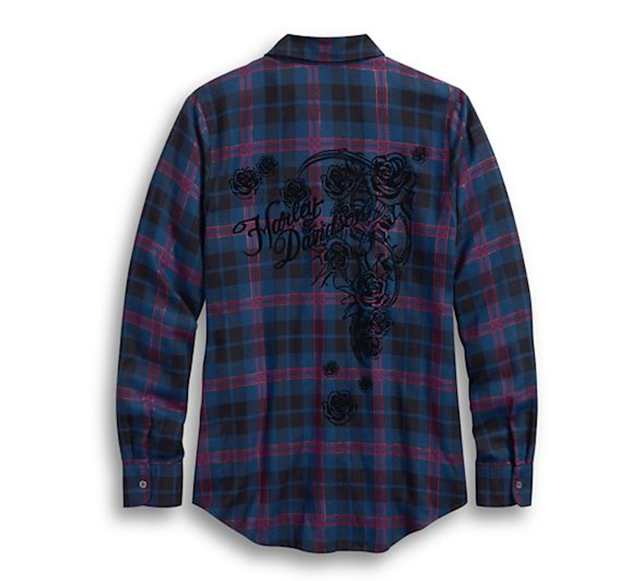 Harley-Davidson® Women's Flocked Roses Plaid Shirt