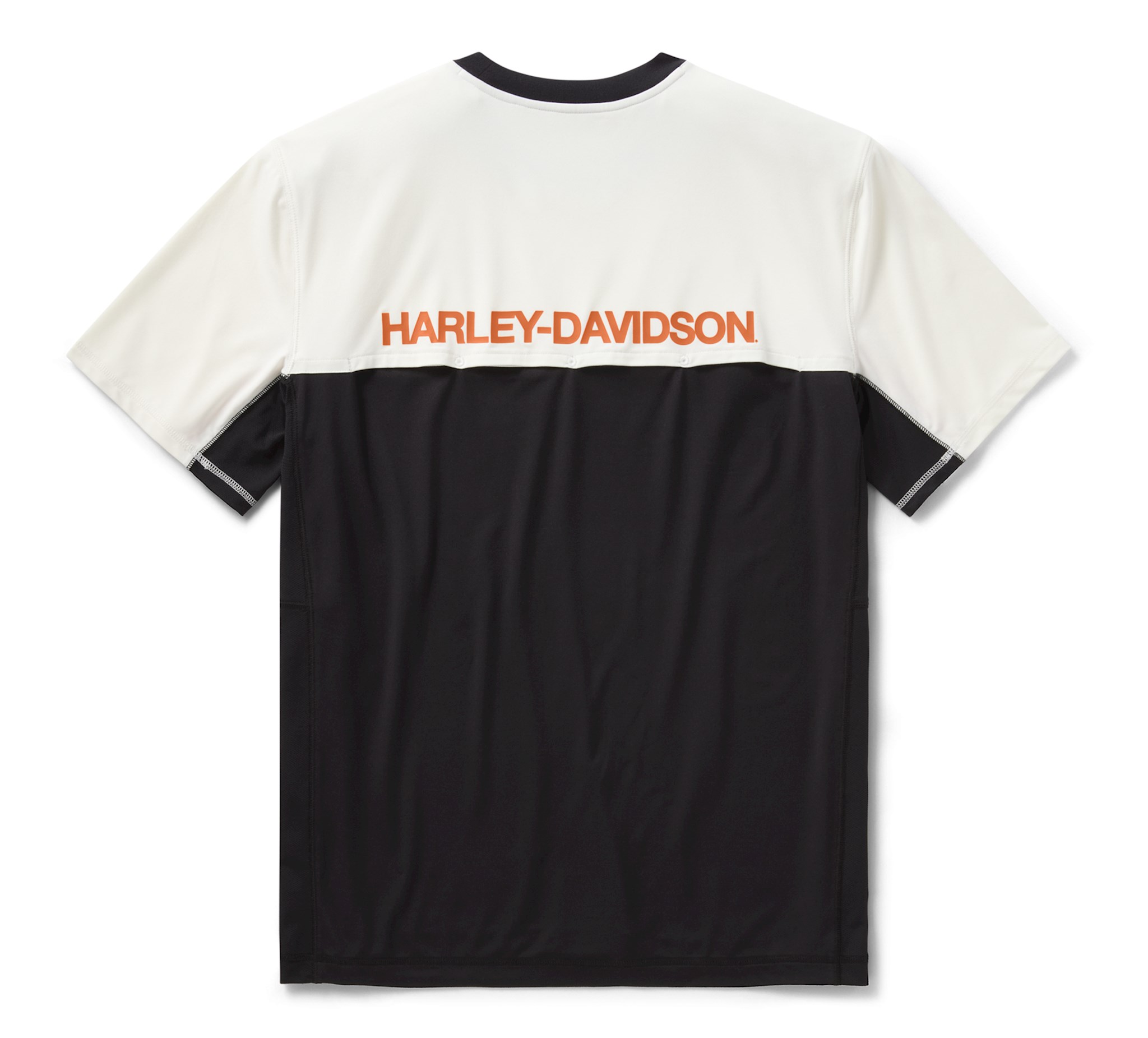 Upgrade je t-shirtcollectie met deze keuze. Gemaakt van een polyester/spandex jersey-mix, biedt onze H-D® TECH Color Block Vented Tee koel comfort met mesh onder de oksels, de zijpanelen en aan de achterkant. Bovendien ziet ie er verdomd goed uit met zijn colorblockstijl en de high-density print van onze eigentijdse branding aan beide zijden.