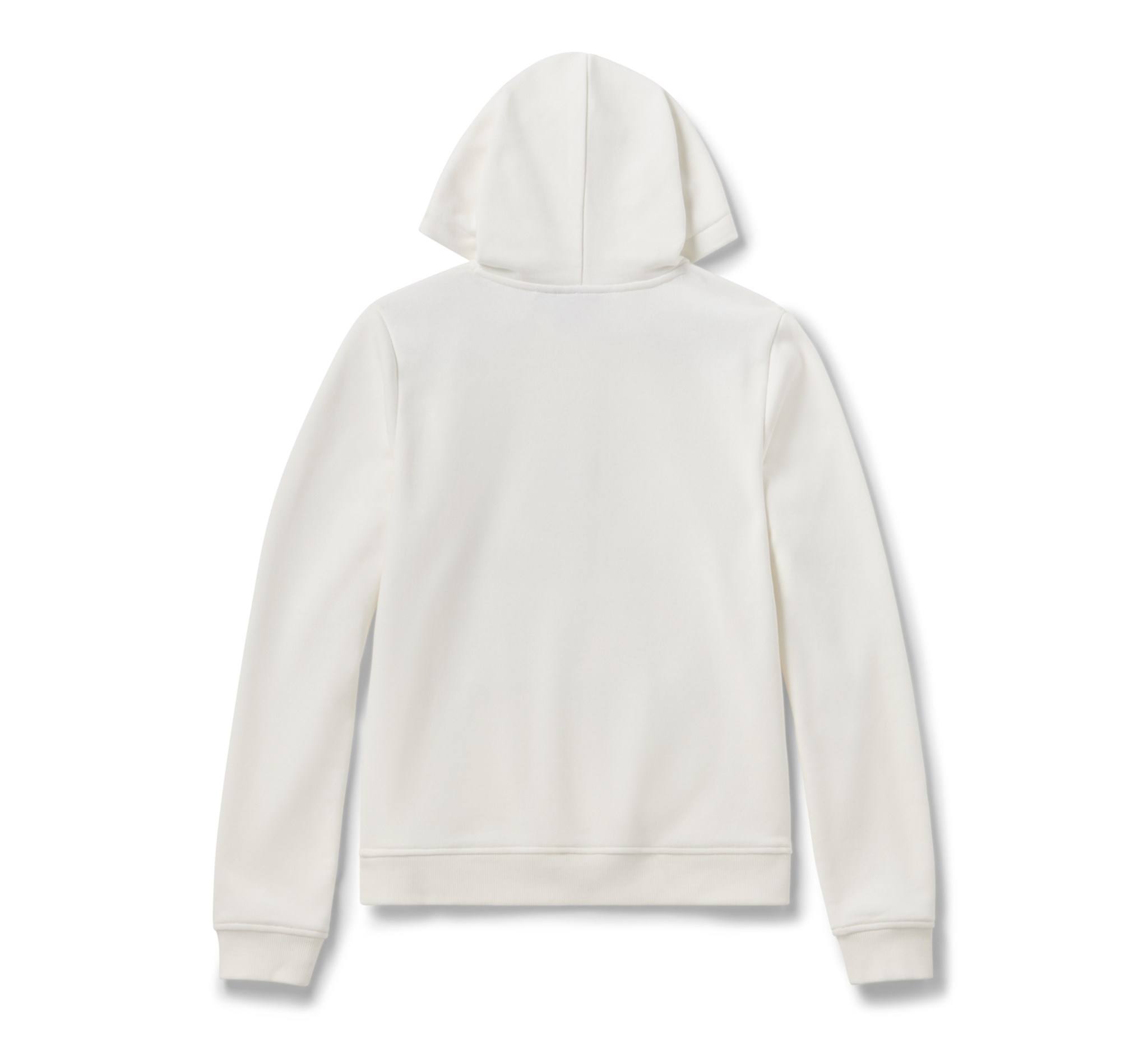 Langdragend comfort krijgt een glinsterende motorupgrade in de Willie G™ Skull Bling Pullover Hoodie. Gemaakt van katoen/polyester Franse terry, heeft hij een met jersey gevoerde capuchon met trekkoord en een ruime kangoeroezak. Voor een verbluffende afwerking heeft deze dameshoodie een volledig strasssteenontwerp van de iconische Willie G Skull. Ken de geschiedenis: de Skull wordt gezien als een van zijn meest populaire creaties. Daarnaast ontwierp Willie G. Davidson ook verschillende motoren, waaronder de FX Super Glide® uit 1971 en de FXS Low Rider® uit 1977.