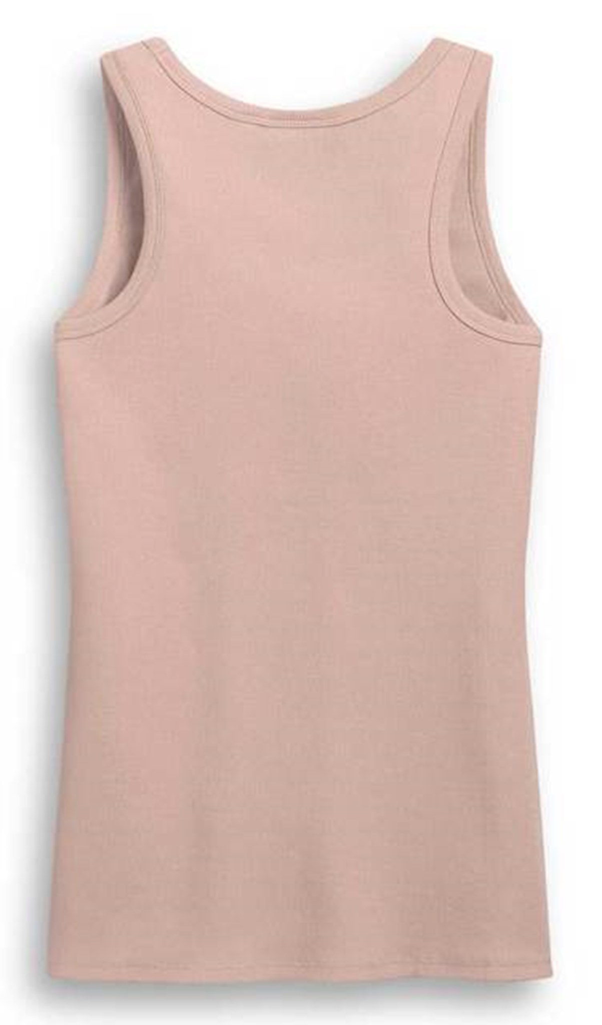Harley-Davidson® Women's Winged Logo Sleeveless Tank Top - Pale Mauve. Made from 93% cotton and 7% spandex. 2x1 rib. Decorated with studs along neckline and printed graphics. Cotton and spandex rib blend for a great fit and totally comfortable.