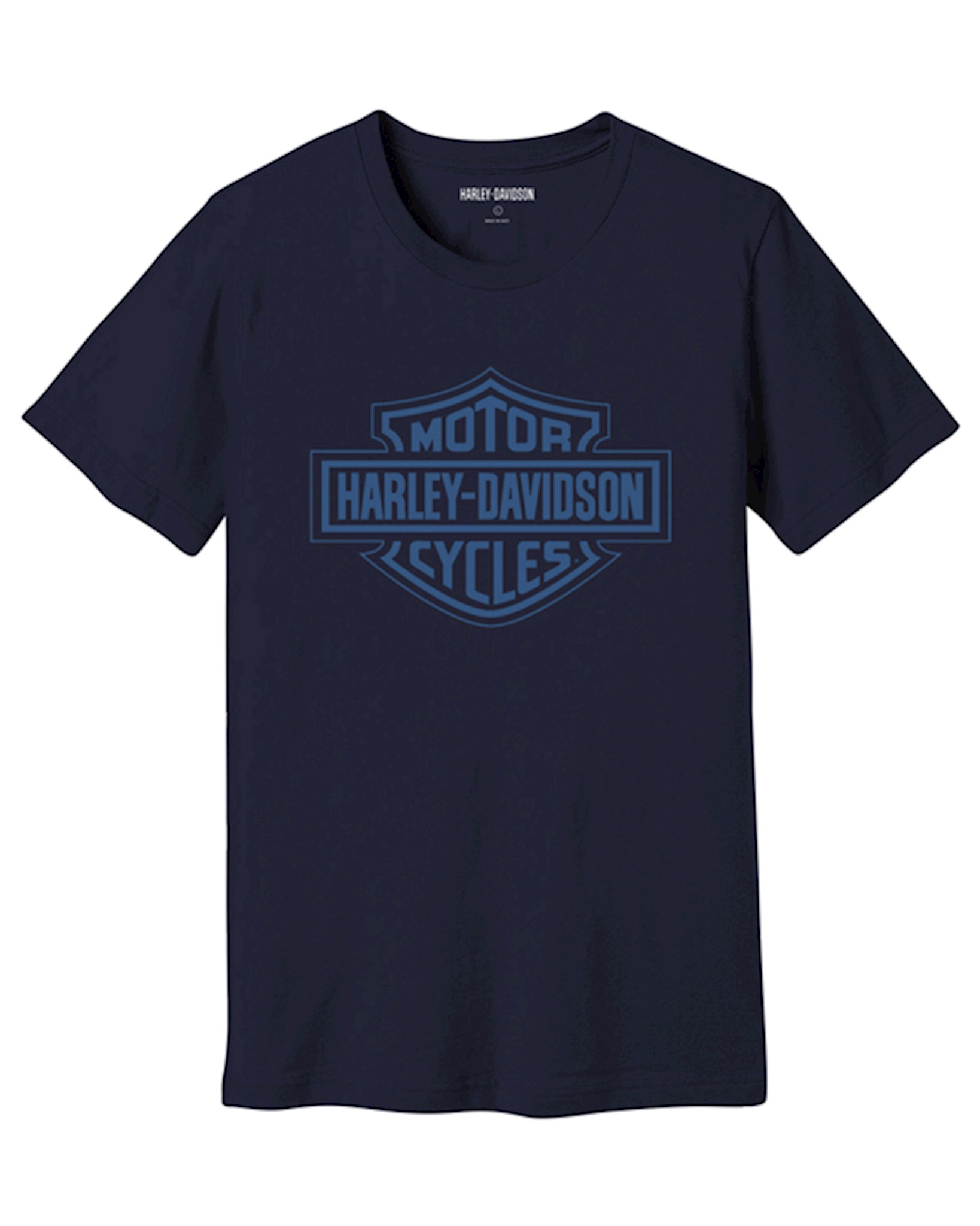 Riders have cherished the Bar & Shield logo for over a century, so we took that to heart when designing this all-cotton jersey tee. Our Bar & Shield Tee features an oversized print of the timeless emblem in a bold blue to perfectly complement whatever you wear with it.