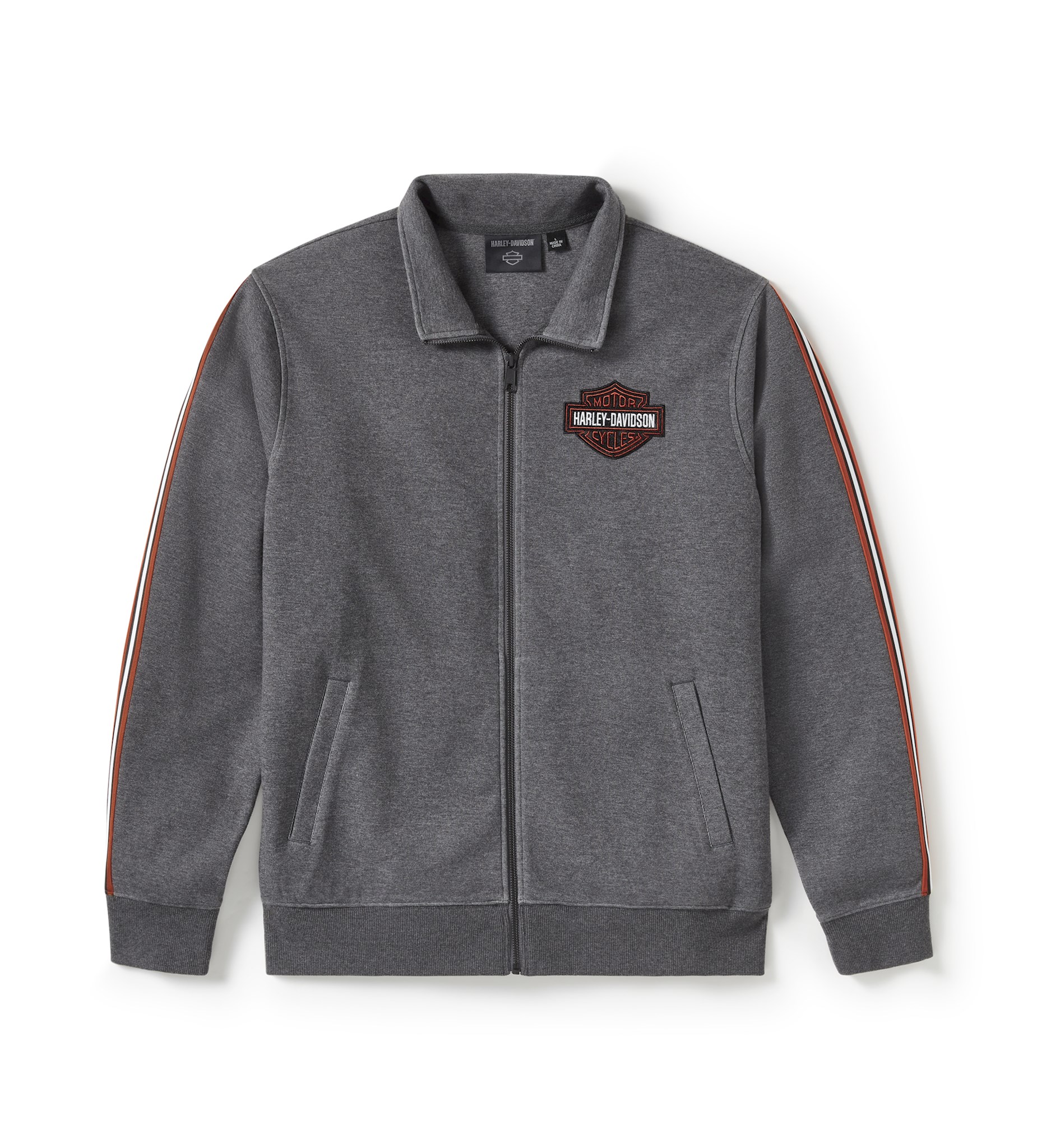 Harley-Davidson® Men's Essential Fleece Zip Front Track Jacket - Charcoal Grey Heather