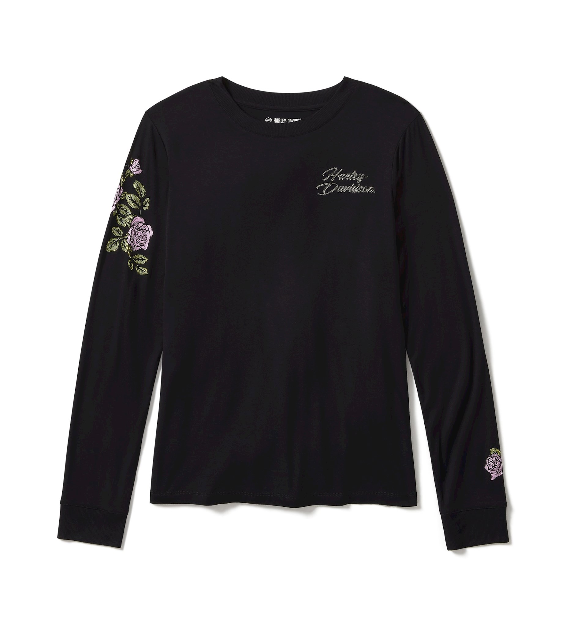 Harley-Davidson® Women's Rose & Thorn Bling Long Sleeve Top - Harley Black